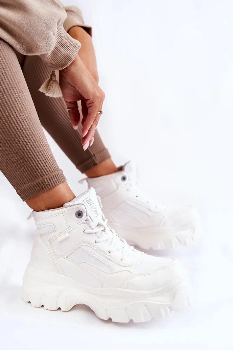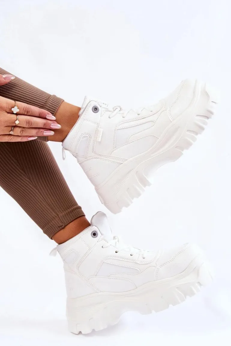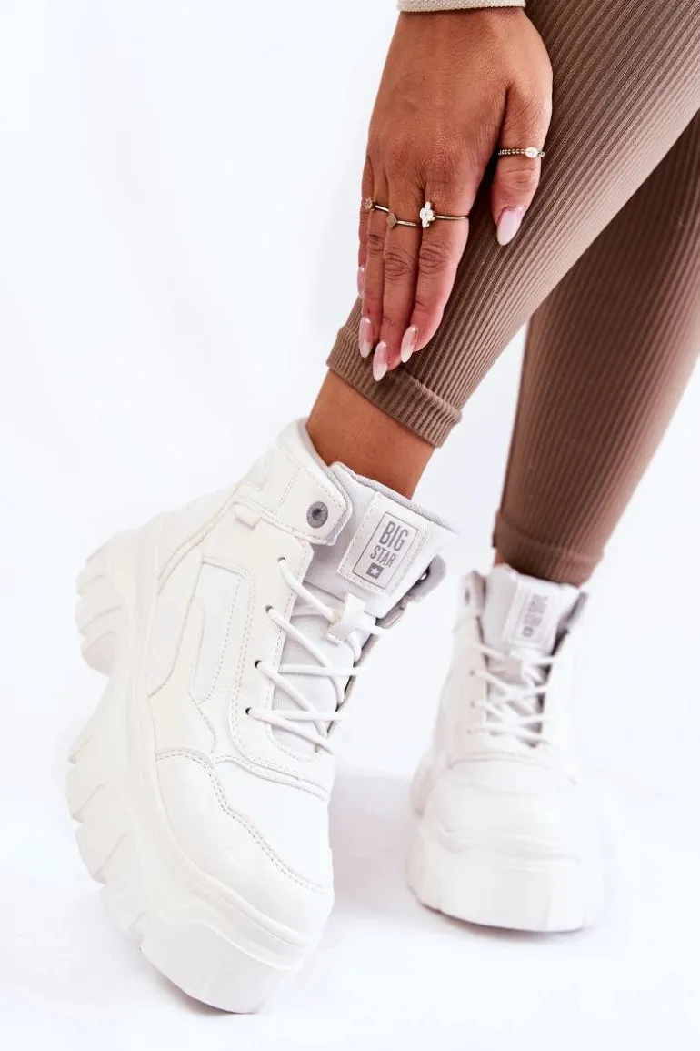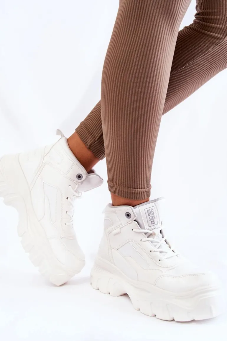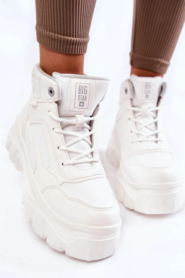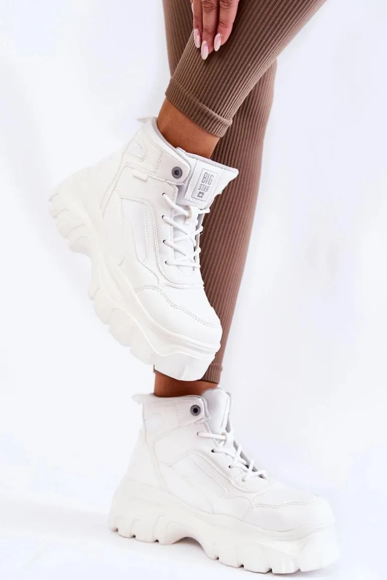 Damskie botki w formie traperów od marki Big Star wykonane zostały z połączenia eko skóry oraz materiału tekstylnego. Posiadają wkładkę Memory Foam System , która zapamiętuje kształt stopy, zapewnia doskonałe dopasowanie, absorbuje wstrząsy, jest odporna na odkształcenia. Struktura pianki pozwala na odparowywanie wilgoci i regulację temperatury. Osadzone na masywnej podeszwie i płaskim obcasie sprawiają, że botki są stabilne. Model z klasycznym sznurowaniem. Przy wyborze rozmiaru prosimy sugerować się tabelą rozmiarów.
