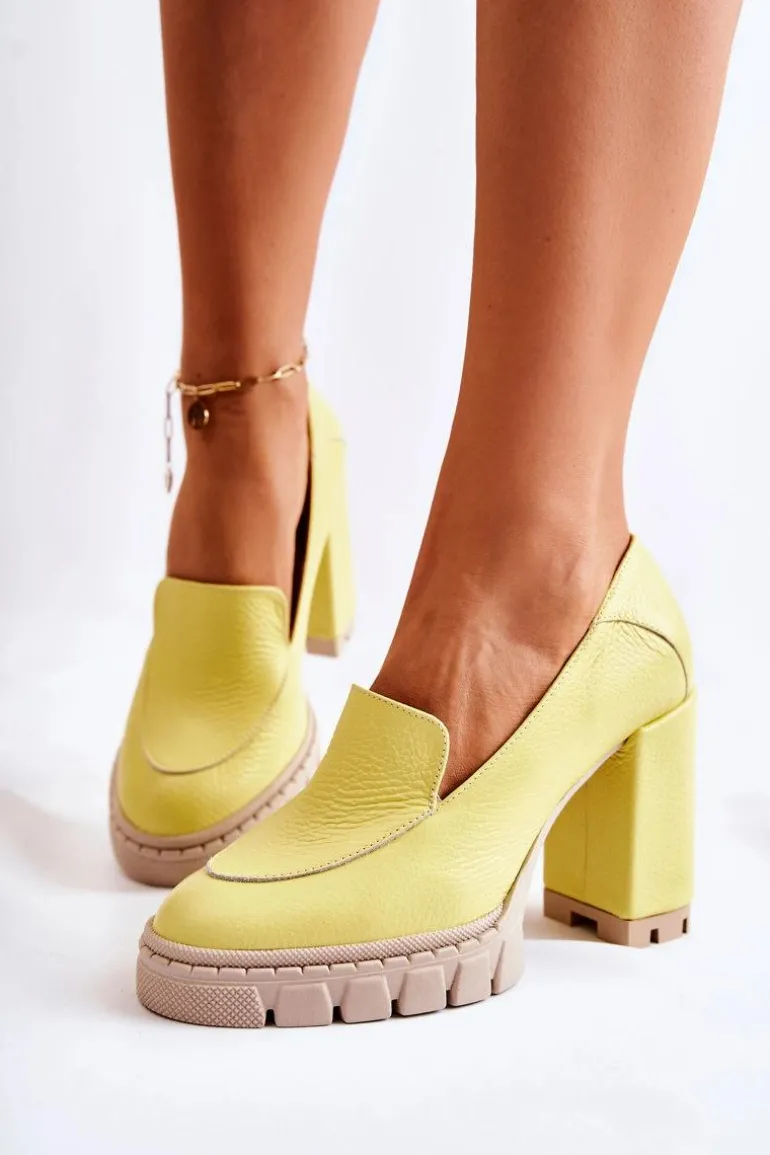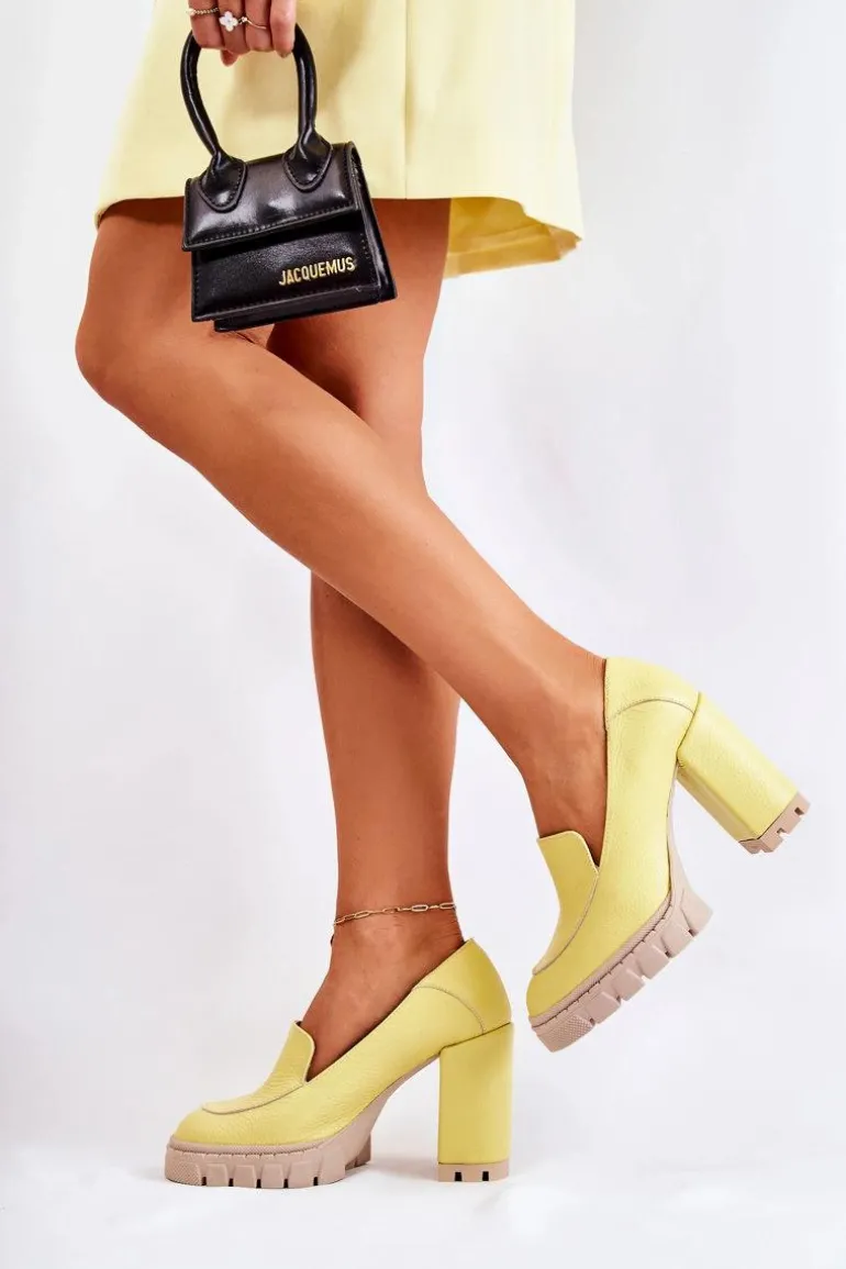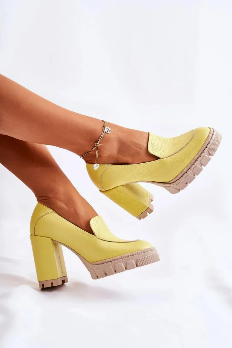 Czółenka na masywnym obcasie w postaci słupka oraz platformie. Osadzone na podeszwie ze żłobieniami, co sprawia, że buty są stabilne podczas użytkowania. Wykonane w całości z naturalnej skóry. Wkładka jest bardzo wygodna, posiada delikatną perforację. Modny fason zachwyci niejedną miłośniczkę wysokich obcasów! Zapiętek jest usztywniany. Koniecznie powinnaś mieć ten model w swojej kolekcji obuwia! Przy wyborze rozmiaru prosimy sugerować się tabelą rozmiarów.