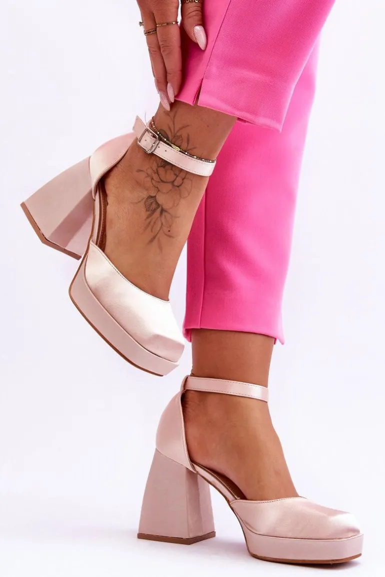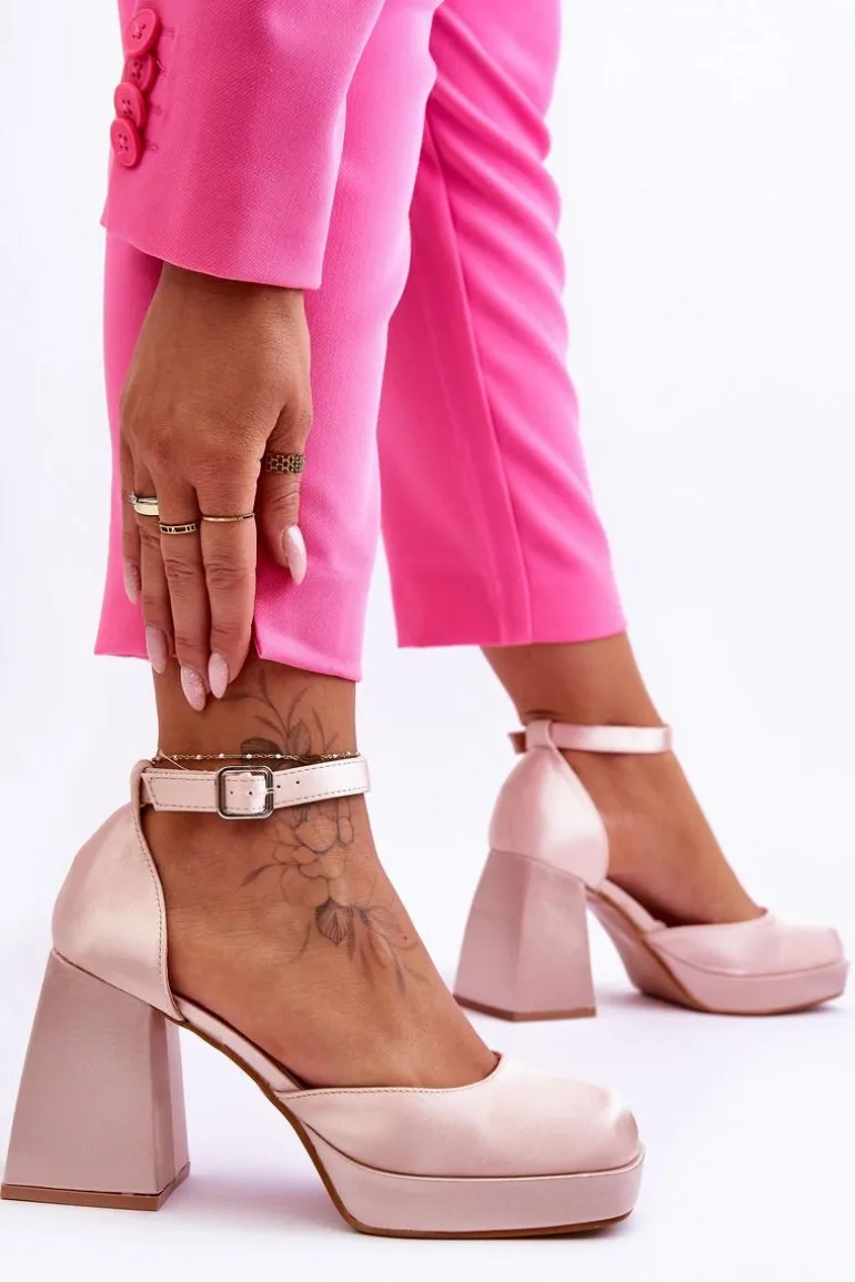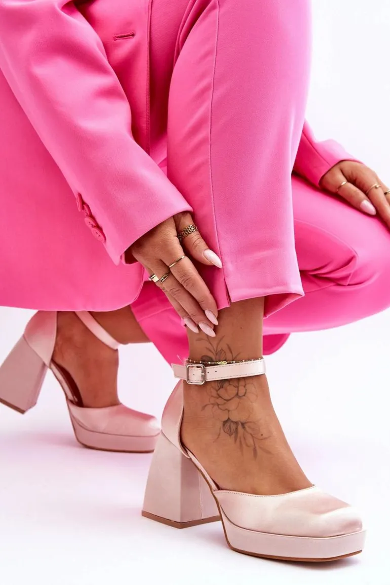 Modne Czółenka Na Masywnym Obcasie Beżowe Sandia
