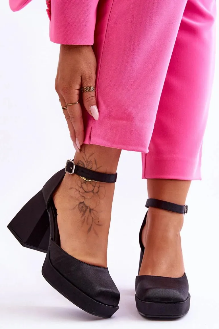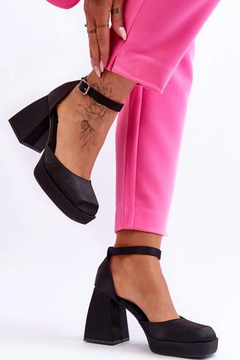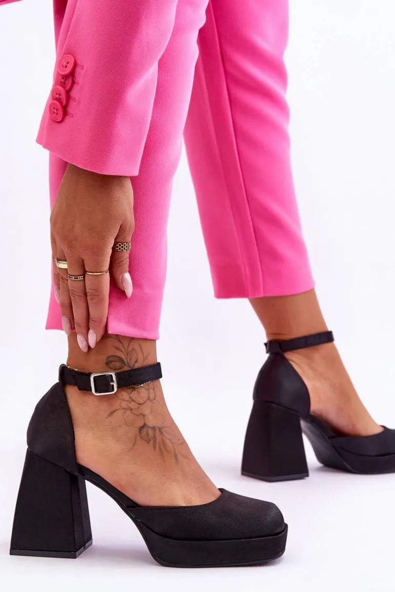 Te modne czółenka zostały osadzone na platformie oraz obcasie w postaci stabilnego, masywnego klocka. Zostały wykonane z materiału tekstylnego. Miękka wkładka z eko skóry zapewni komfortowe użytkowanie. Charakterystyczny, kwadratowy nosek wyróżnia ten model. Zapinane na regulowany pasek ze sprzączką. Przy wyborze rozmiaru prosimy sugerować się tabelą rozmiarów.