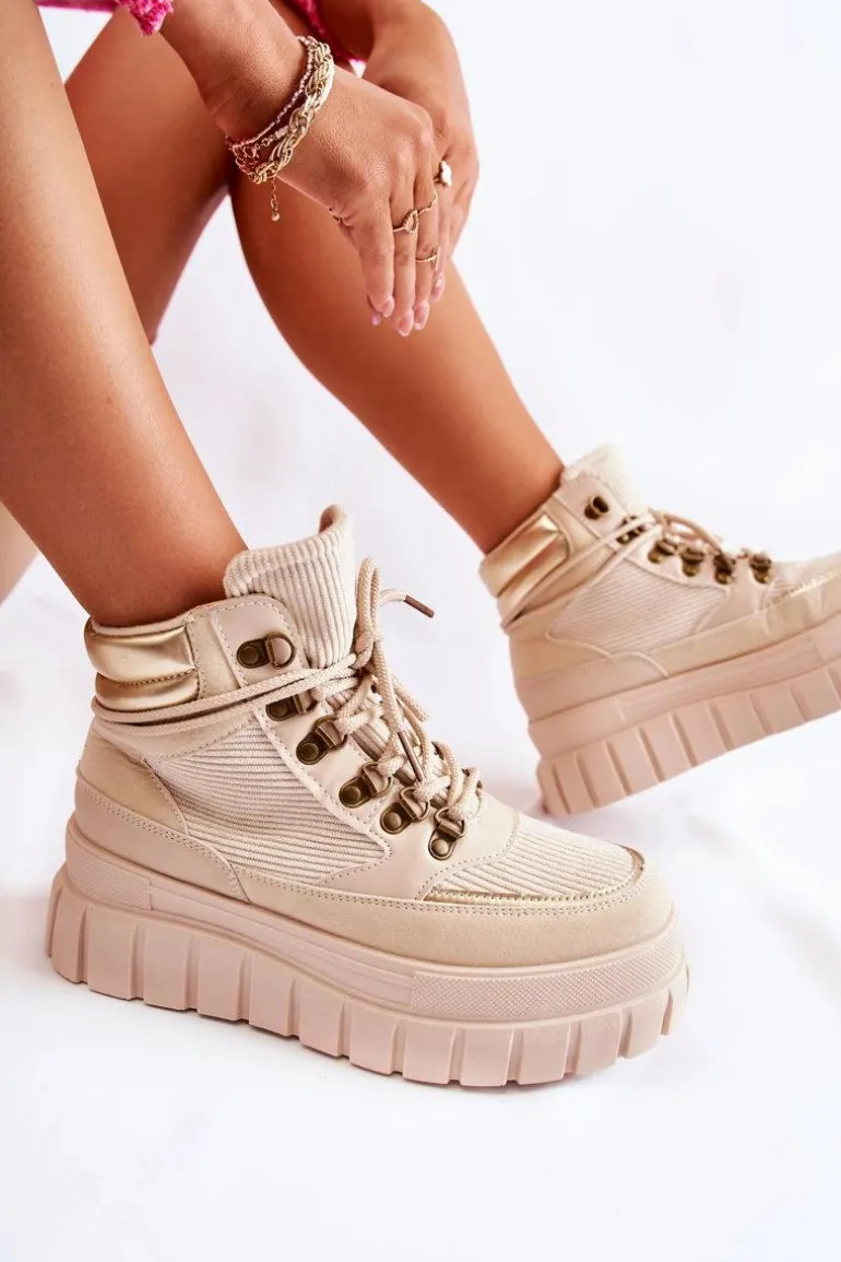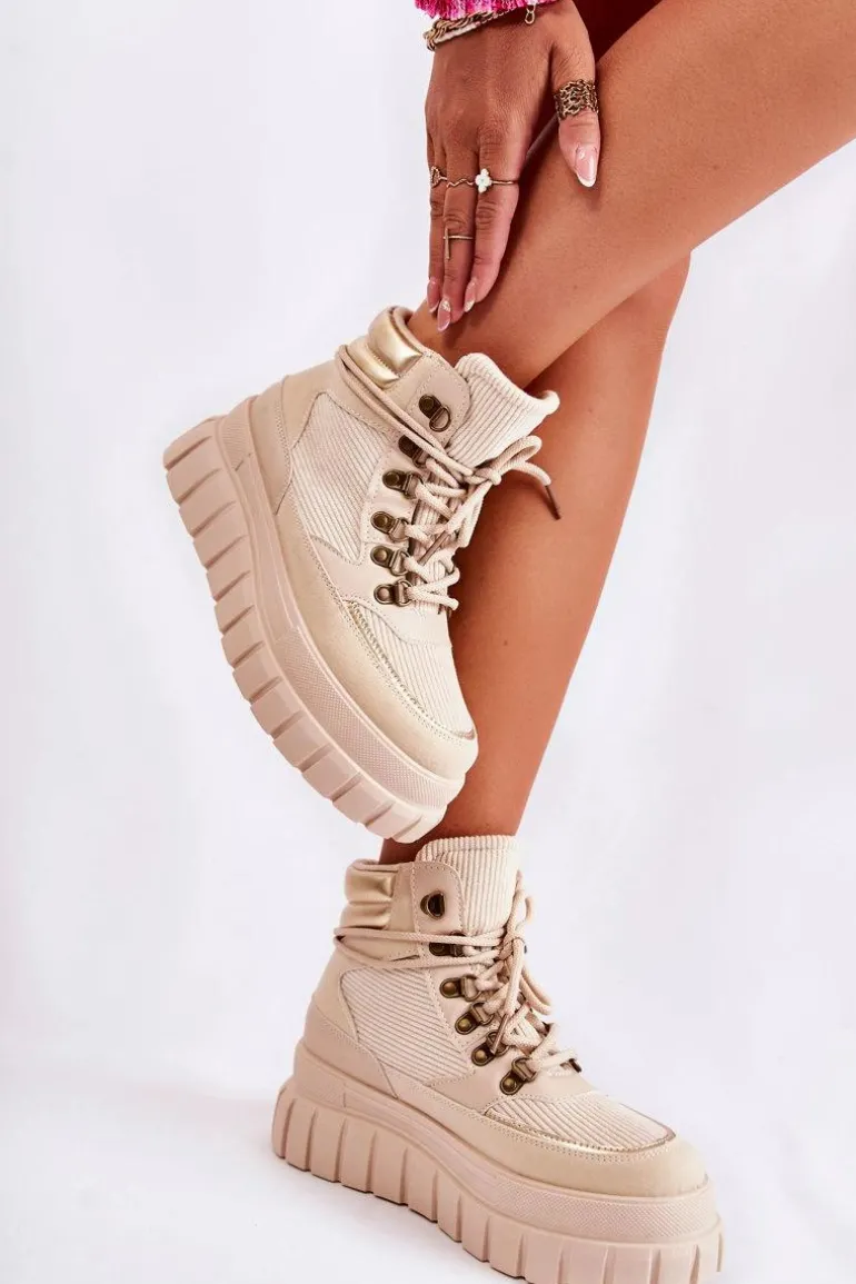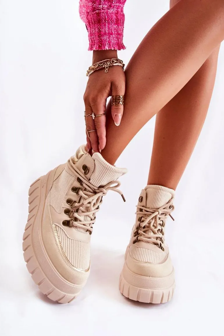 Modne botki damskie zostały wykonane z wierzchu z materiału tekstylnego. Posiadają wstawki z eko skóry. Model wiązany na okrągłe sznurowadła. Środek jest ocieplony kocem obuwniczym. Botki osadzone na platformie ze żłobieniami. Podeszwa antypoślizgowa. Nosek zaokrąglony. Powinnaś mieć ten model w swojej szafie! Nie czekaj dłużej – kup już dziś! Przy wyborze rozmiaru prosimy sugerować się tabelą rozmiarów.