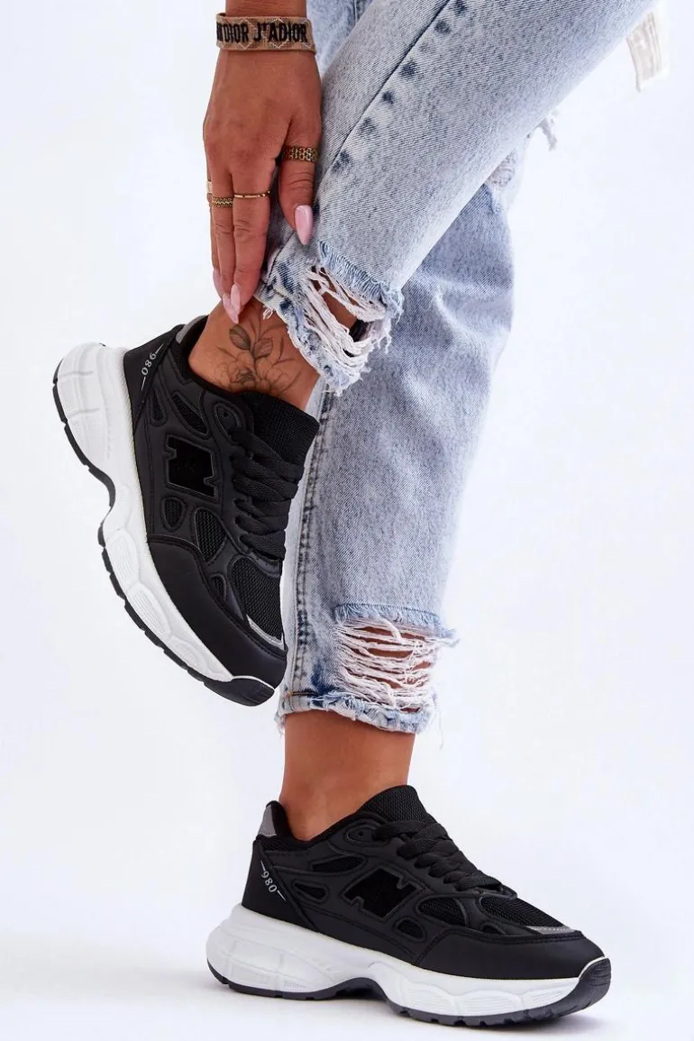 Modne buty sportowe na platformie i masywnym, płaskim obcasie to Twój MUST HAVE w tym sezonie! Zostały wykonane z połączenia eko skóry oraz materiału tekstylnego. Antypoślizgowa podeszwa zapewni stabilność na każdym kroku. Buty są klasycznie sznurowane, co pozwoli na odpowiednie dopasowanie obuwia do tęgości nogi. Przy wyborze rozmiaru prosimy kierować się tabelą rozmiarów.