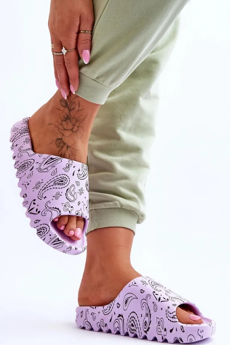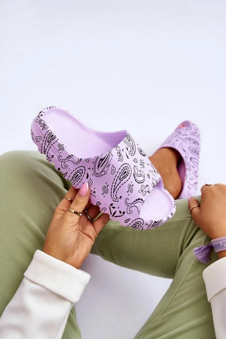 Te klapki powinny znaleźć się w Twojej szafie! Klapki zostały wykonane w całości z tworzywa sztucznego imitującego gumę. Model ten posiada modny, szeroki pasek. Na zewnętrznej stronie obuwia wykonano nadruk w ciekawe wzory. Klapki są idealne do codziennego użytkowania. Świetnie sprawdzą się zamiast papci czy jako klapki na basen. Niezwykle wygodny i komfortowy model. Po prostu musisz je mieć! Przy wyborze rozmiaru prosimy sugerować się tabelą rozmiarów.