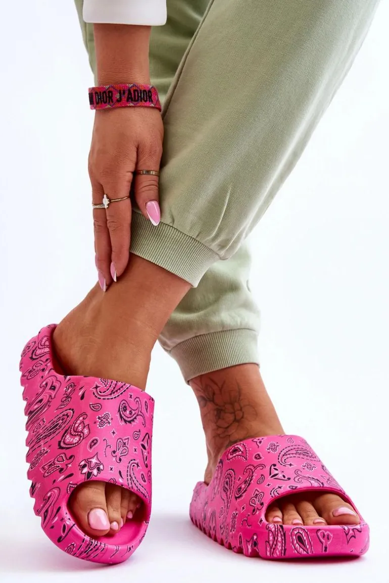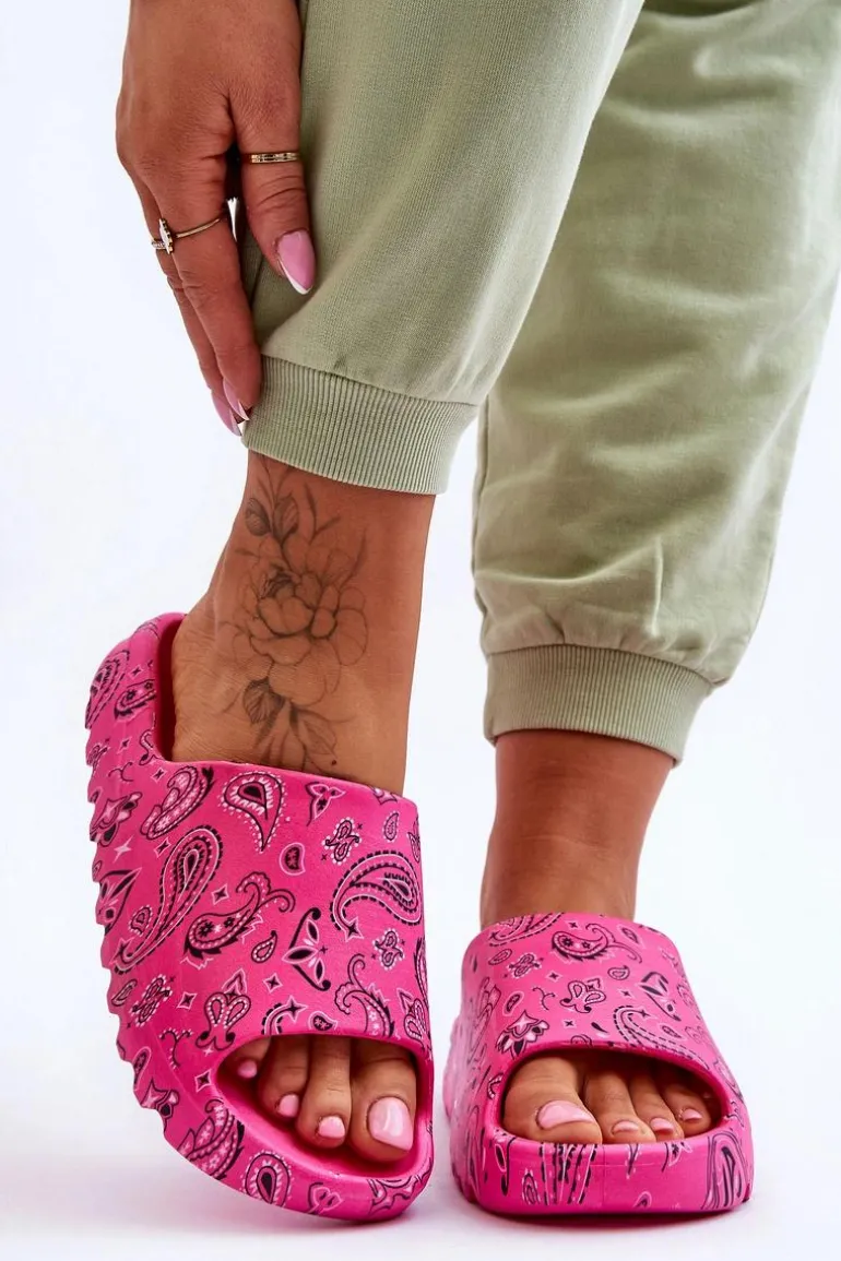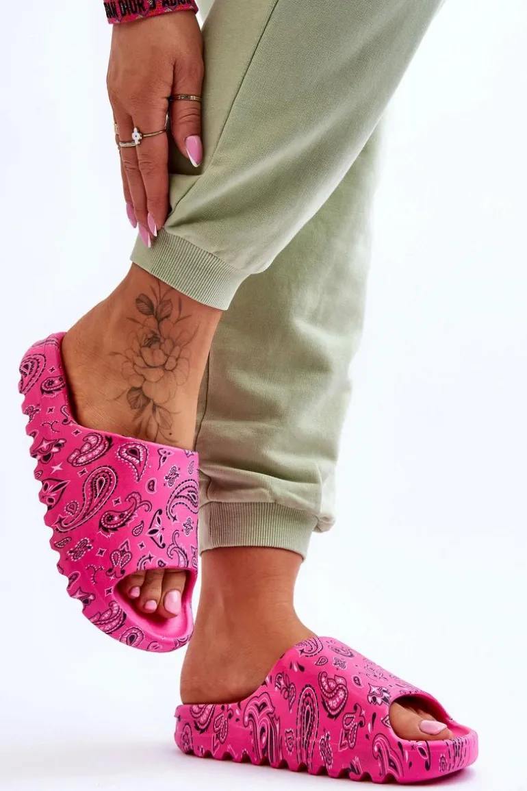 Te klapki powinny znaleźć się w Twojej szafie! Klapki zostały wykonane w całości z tworzywa sztucznego imitującego gumę. Model ten posiada modny, szeroki pasek. Na zewnętrznej stronie obuwia wykonano nadruk w ciekawe wzory. Klapki są idealne do codziennego użytkowania. Świetnie sprawdzą się zamiast papci czy jako klapki na basen. Niezwykle wygodny i komfortowy model. Po prostu musisz je mieć! Przy wyborze rozmiaru prosimy sugerować się tabelą rozmiarów.