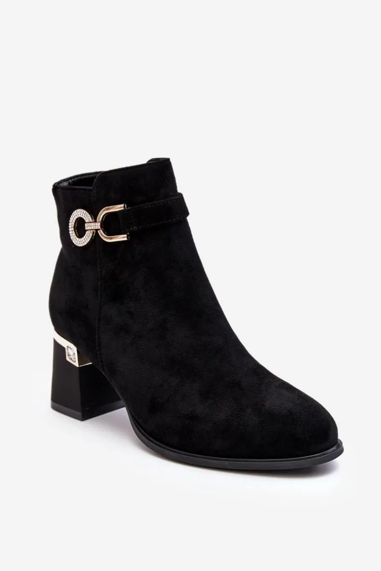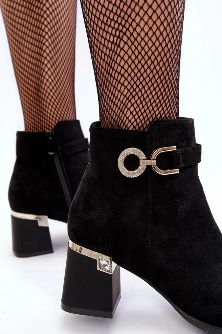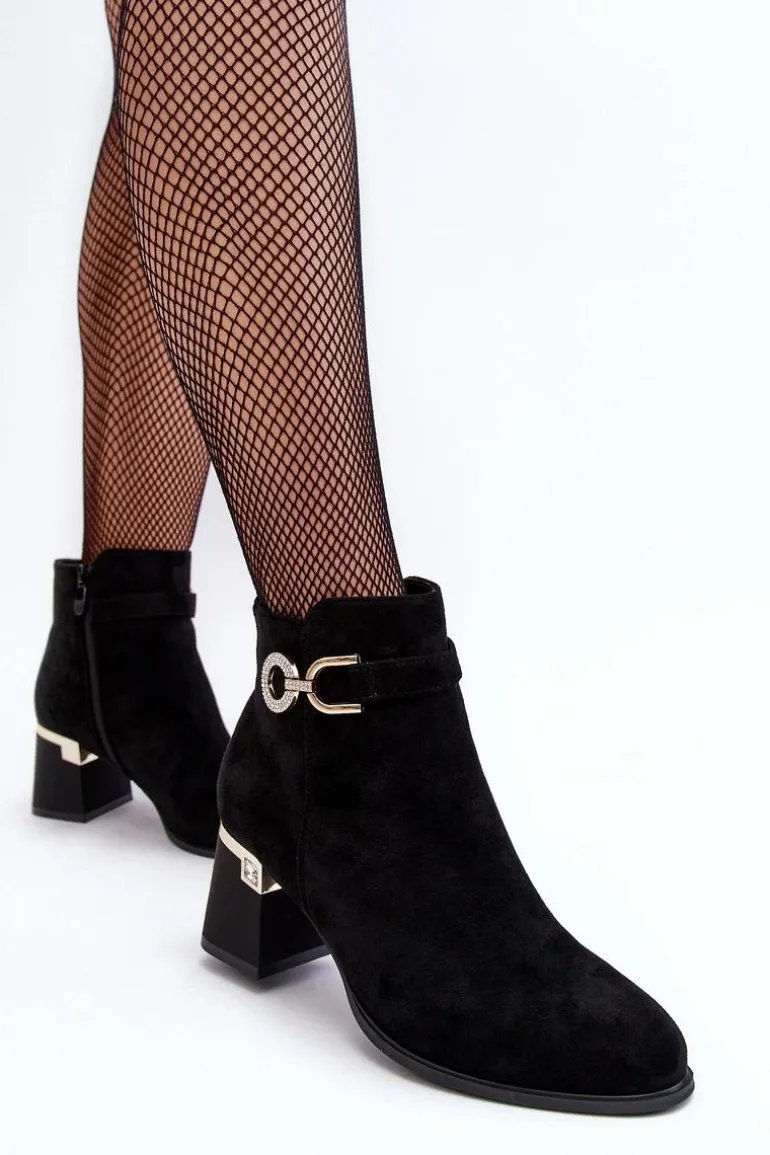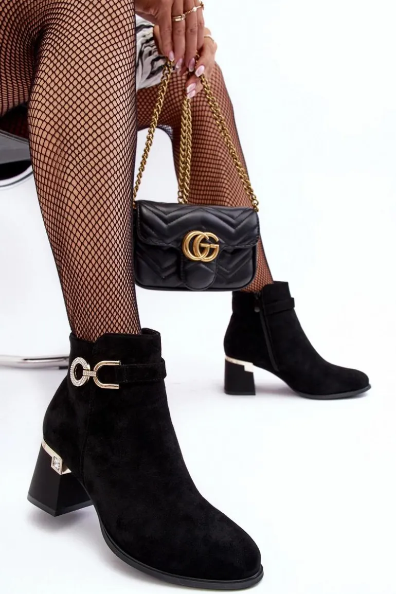 Modne Damskie Zamszowe Botki Czarne Nola