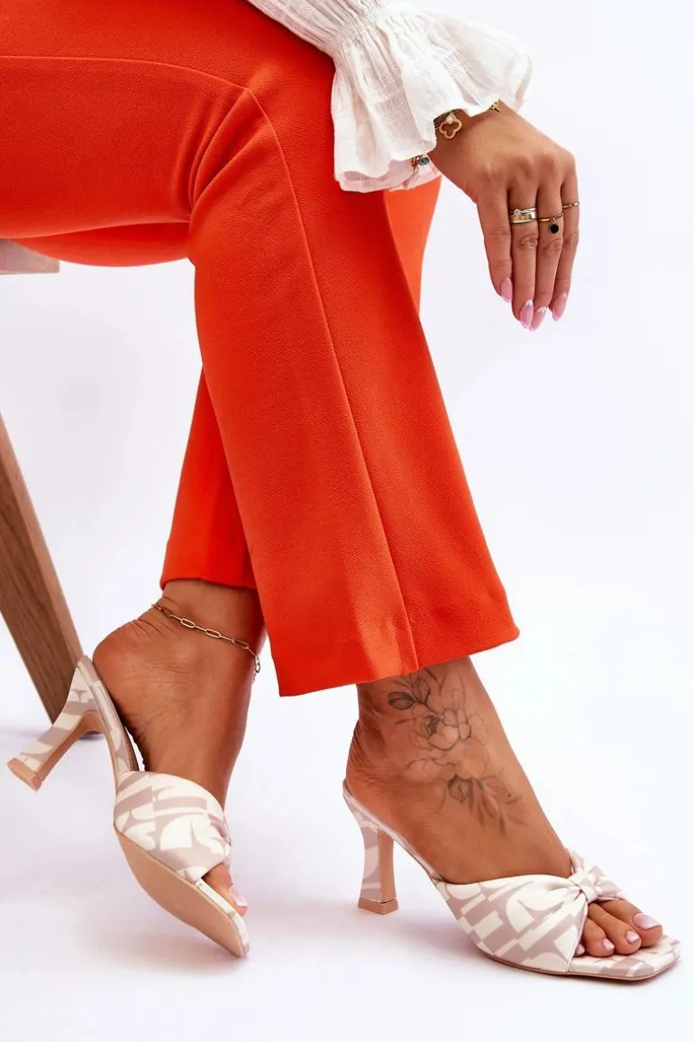Modne Klapki Na Obcasie W Print Beżowe Floria