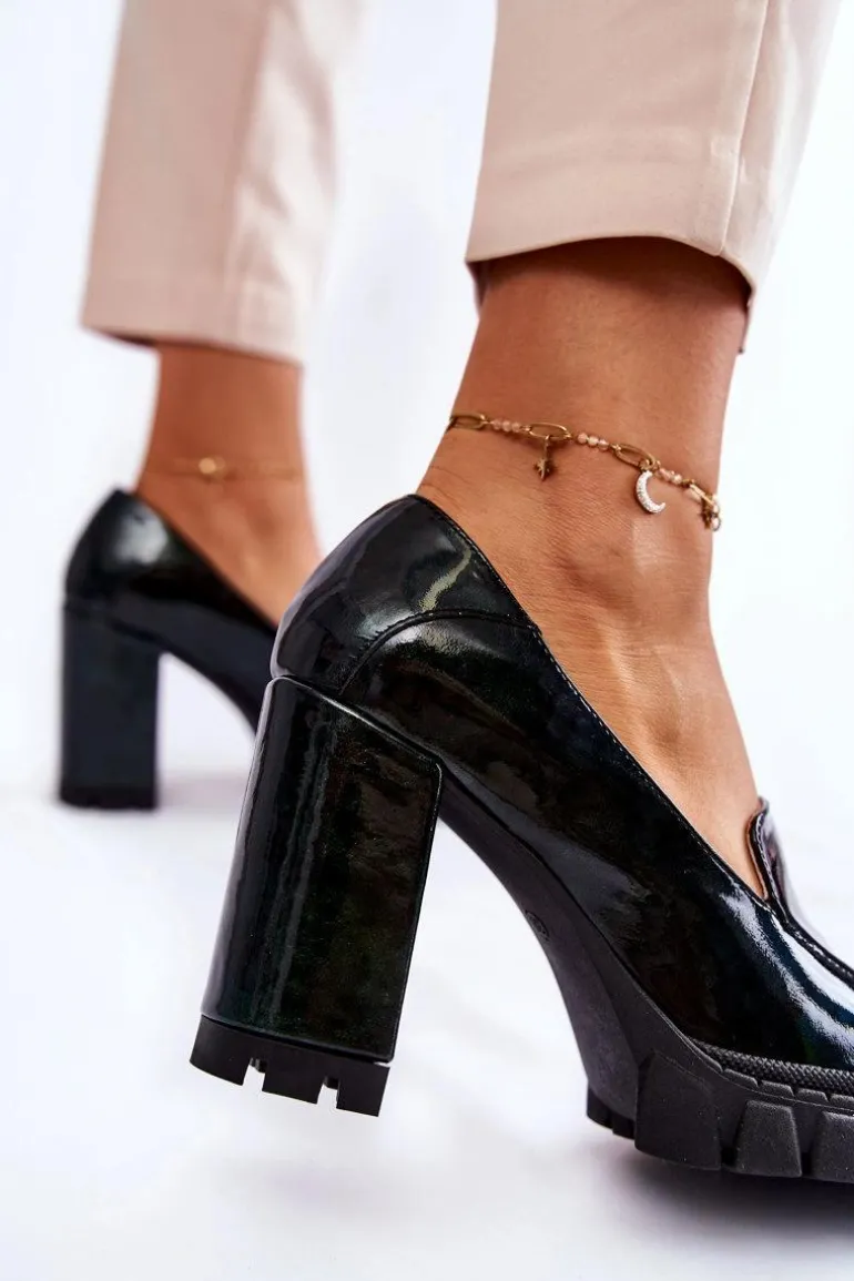 Czółenka na masywnym obcasie w postaci słupka oraz platformie. Osadzone na podeszwie ze żłobieniami, co sprawia, że buty są stabilne podczas użytkowania. Wykonane w całości z naturalnej skóry. Wkładka jest bardzo wygodna, posiada delikatną perforację. Modny fason zachwyci niejedną miłośniczkę wysokich obcasów! Zapiętek jest usztywniany. Koniecznie powinnaś mieć ten model w swojej kolekcji obuwia! Przy wyborze rozmiaru prosimy sugerować się tabelą rozmiarów.