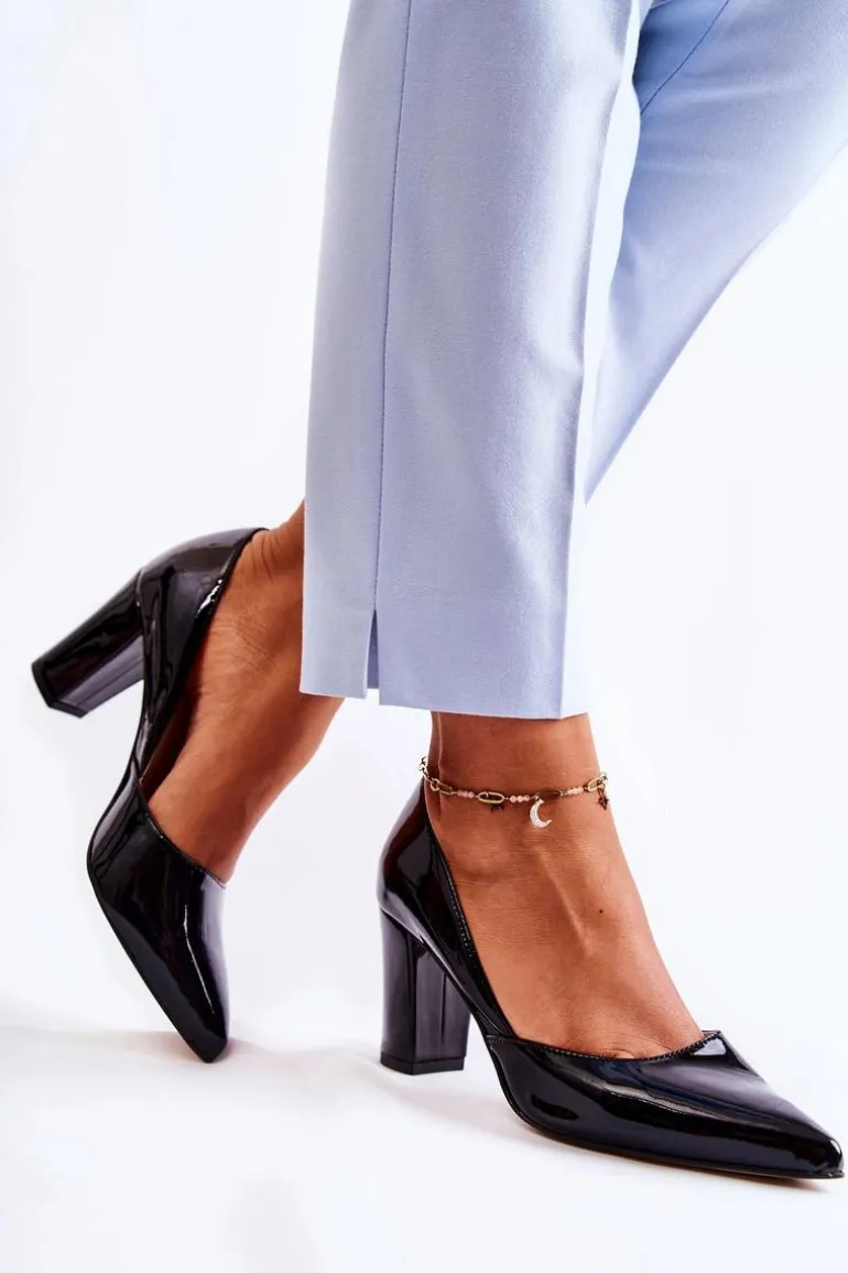 Modne Lakierowane Czółenka Na Słupku Czarne Emotion