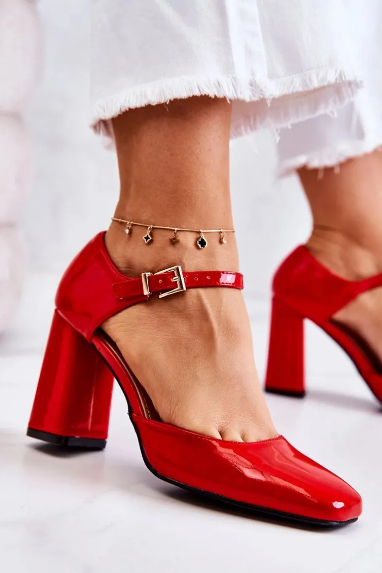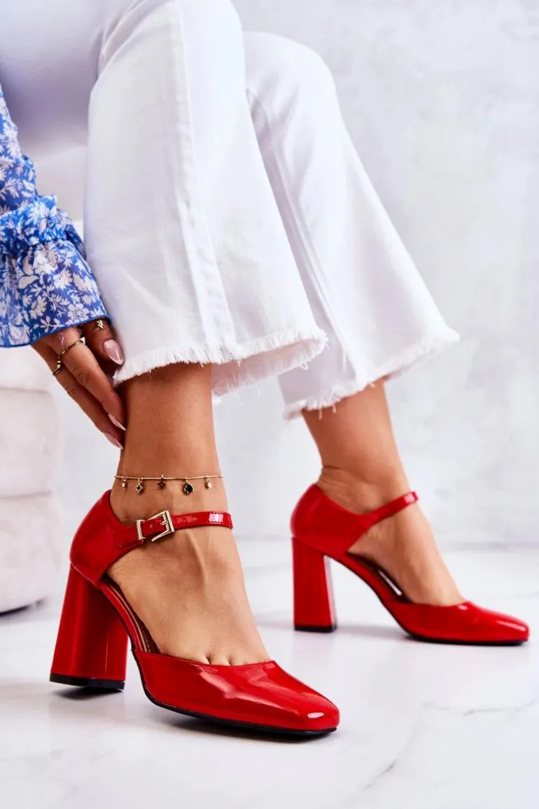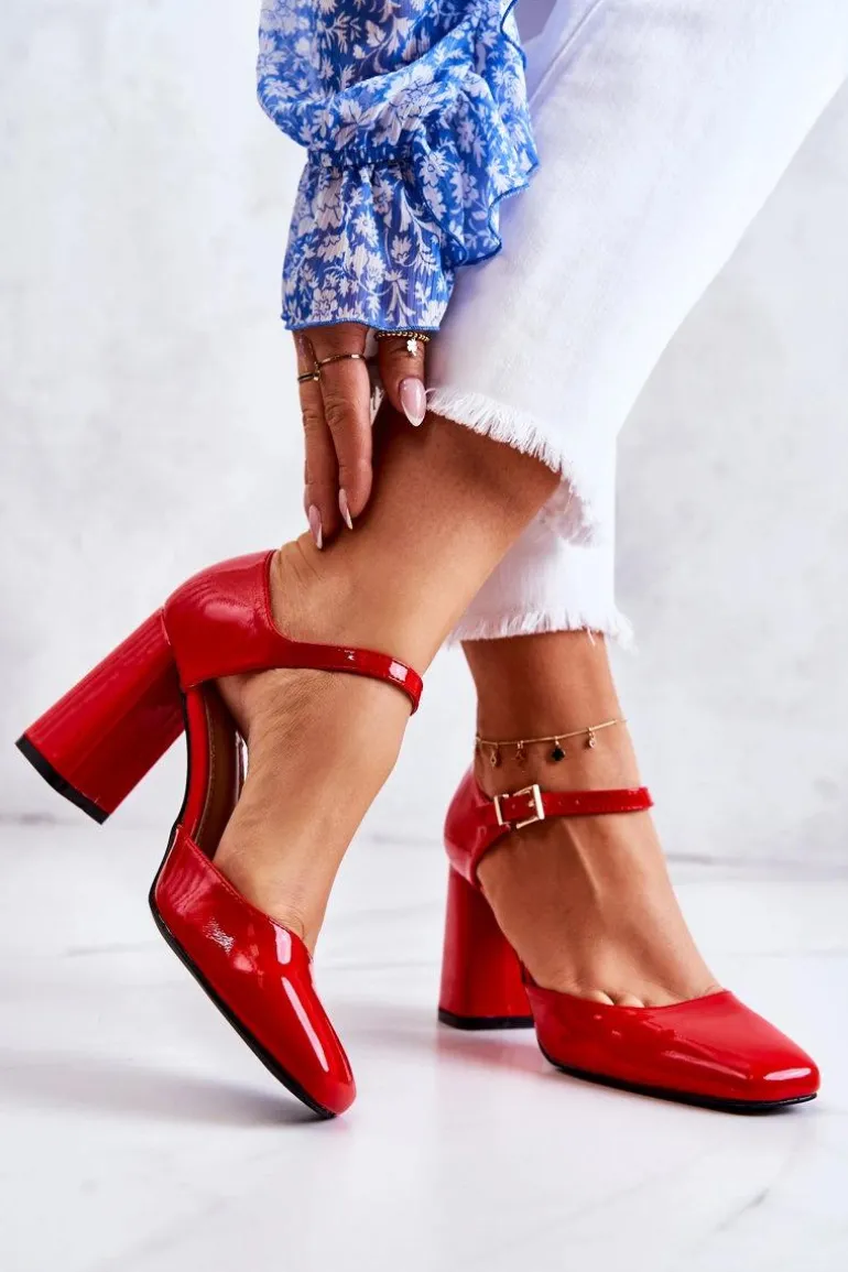 Modne Lakierowane Czółenka Na Słupku Czerwone Maoris