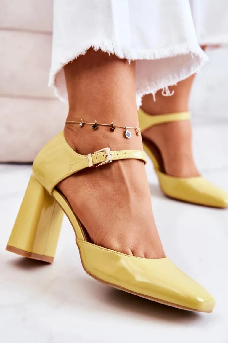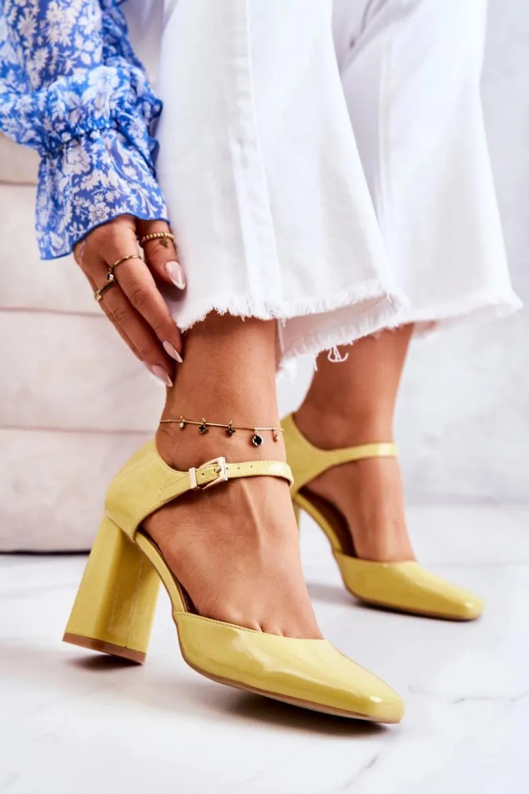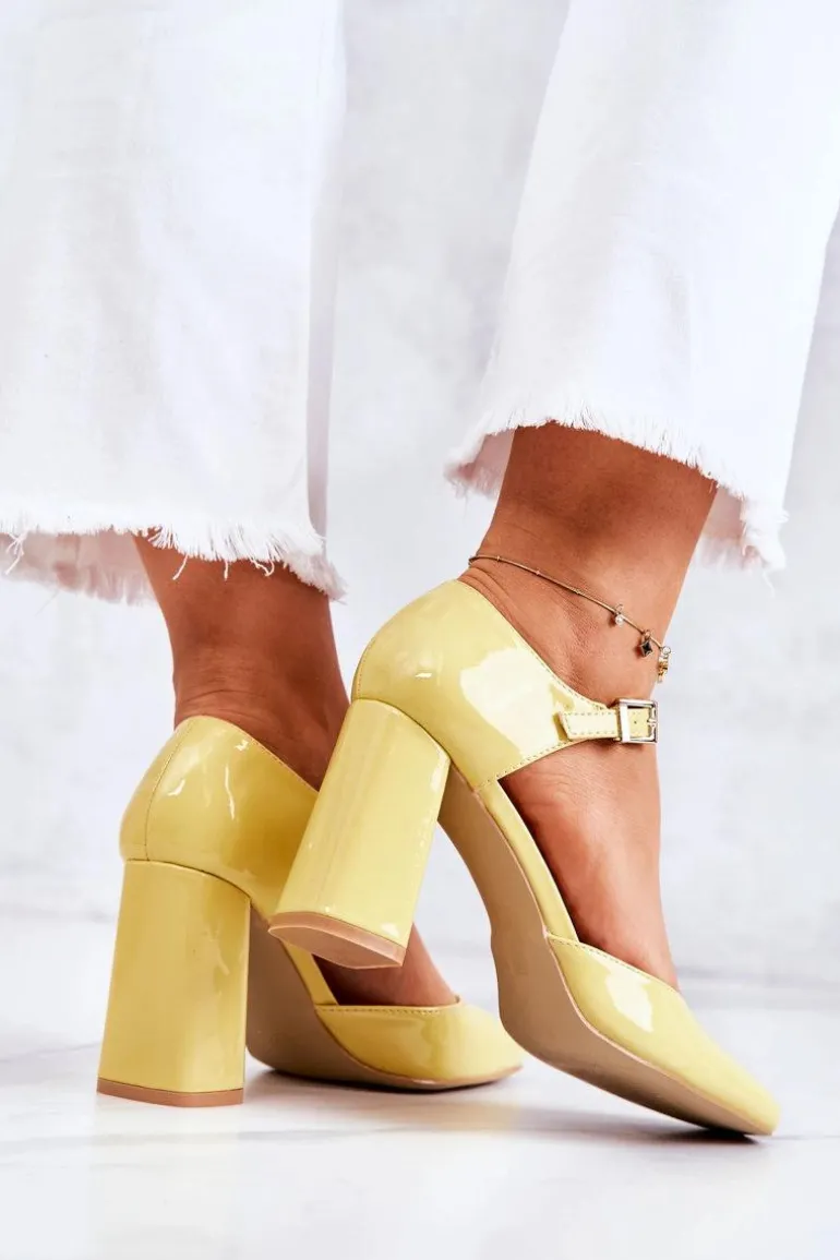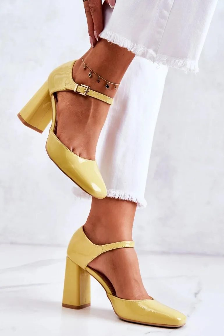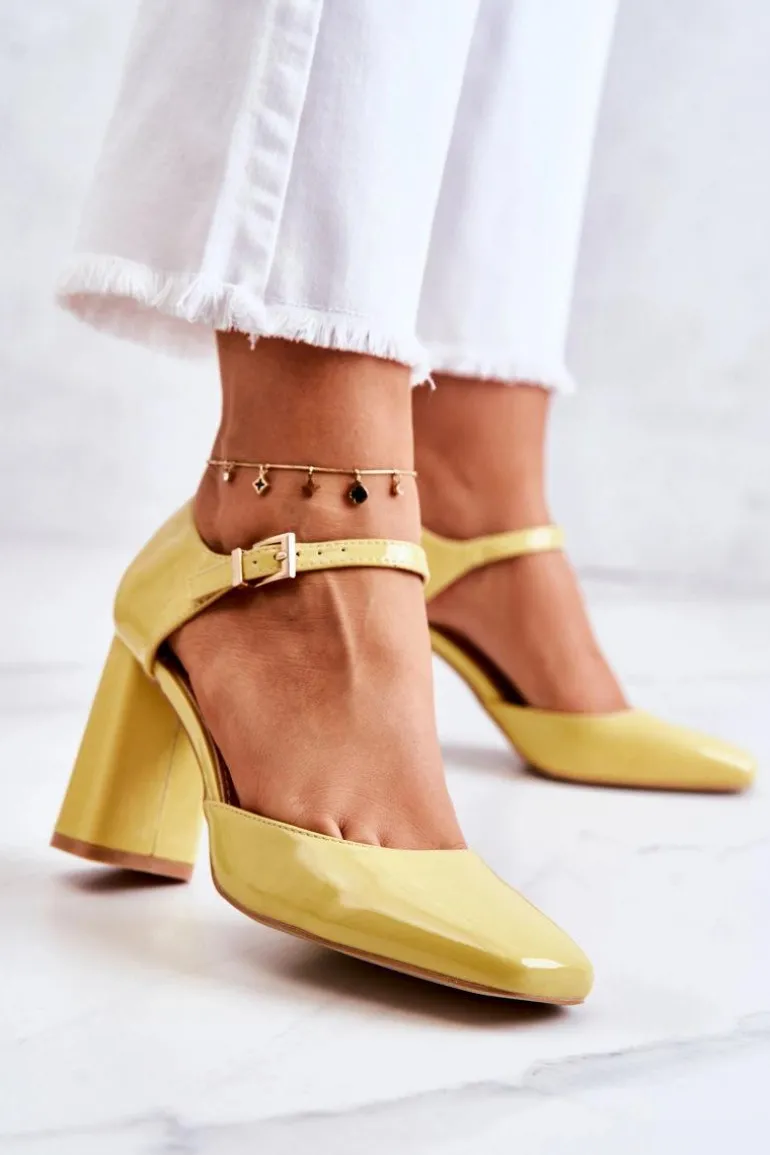 Modne Lakierowane Czółenka Na Słupku Żółte Maoris