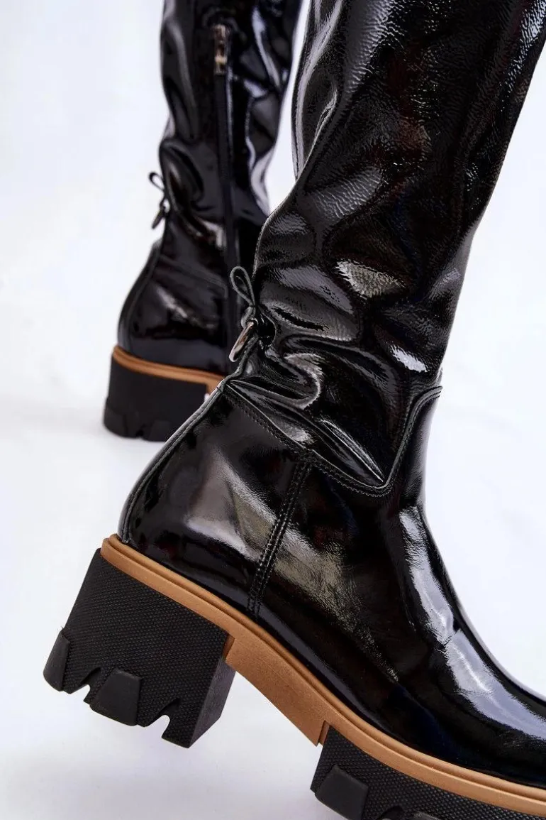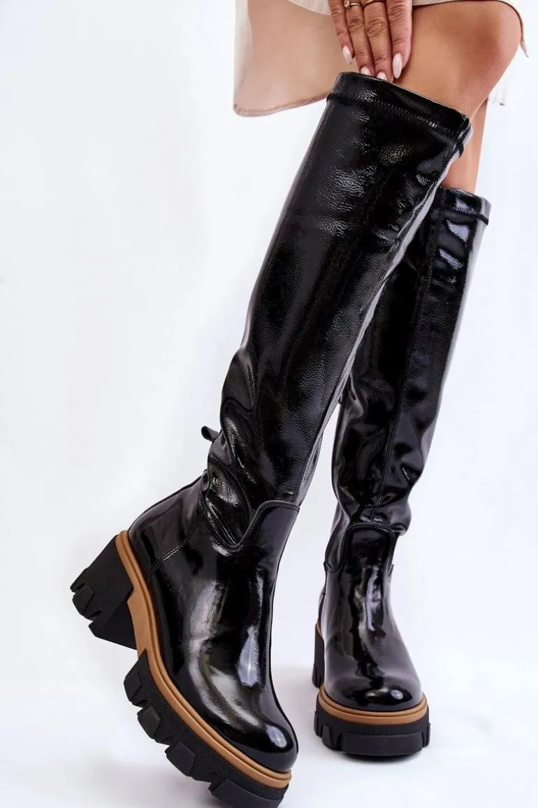 Wyjątkowe kozaki zostały wykonane z wysokiej jakości naturalnej skóry. Model wsuwany, z suwakiem na boku. Kozaki osadzono na masywnym obcasie i platformie ze żłobieniami. Zapiętek jest usztywniany. W środku zostały ocieplone na wysokości stopy kocem obuwniczym, a na pozostałej wysokości materiałem. Przy wyborze rozmiaru prosimy kierować tabelą rozmiarów.