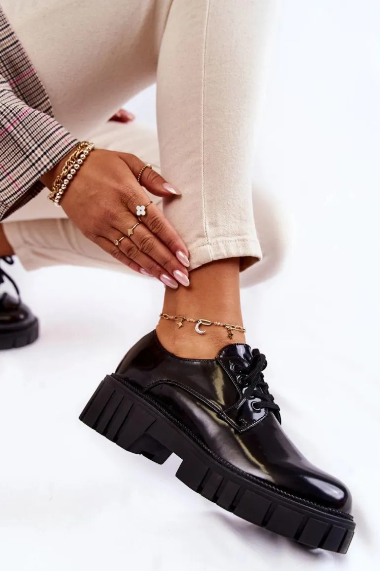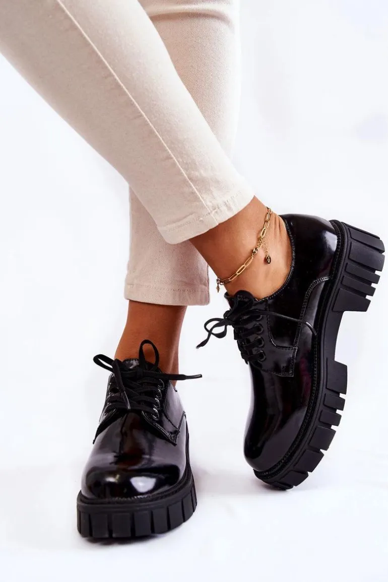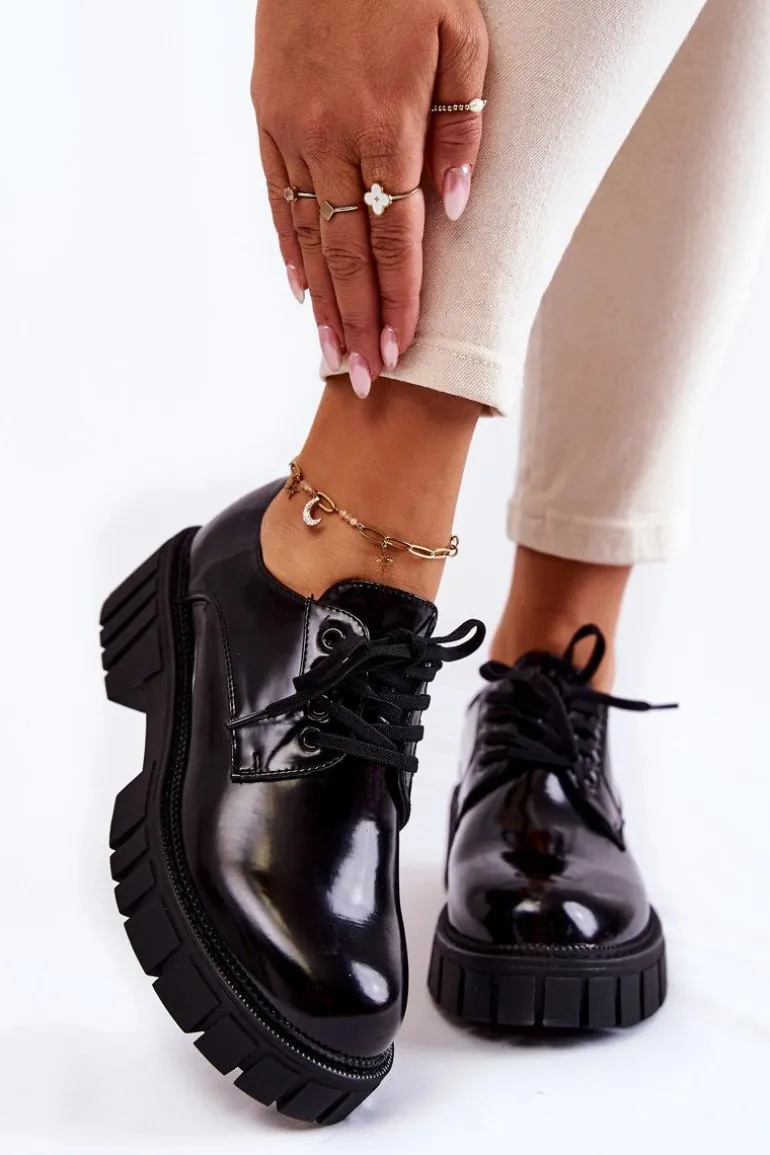 Półbuty zostały wykonane z wysokiej jakości eko skóry. Miękka wkładka ze skóry naturalnej to gwarancja komfortu. Elastyczne wiązanie sprawia, że można dopasować je odpowiednio do tęgości nogi. Niewysoki, masywny obcas zapewni wygodę. Koniecznie powinnaś mieć ten model w swojej szafie! Podczas wyboru rozmiaru prosimy sugerować się tabelą rozmiarów.