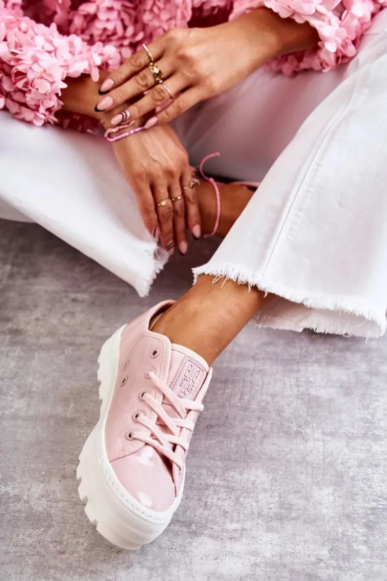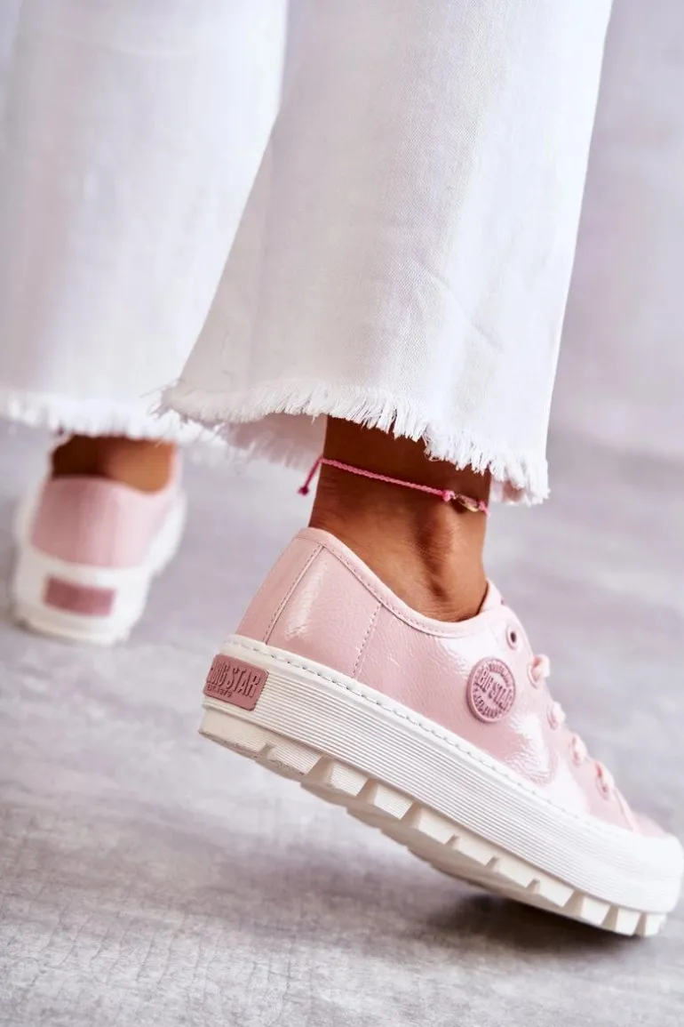 Rewelacyjne trampki od marki Big Star! Nowoczesny design oraz podeszwa z wysokim bieżnikiem wyróżnia ten model spośród innych! Z boku cholewki znajduje się gumowy emblemat. Trampki te dodatkowo posiadają logowane sznurowadła. Podeszwa antypoślizgowa zapewni stabilność. Model ten posiada także usztywniany zapiętek. Koniecznie powinnaś je mieć w swojej garderobie! Przy wyborze rozmiaru prosimy sugerować się tabelą rozmiarów.
