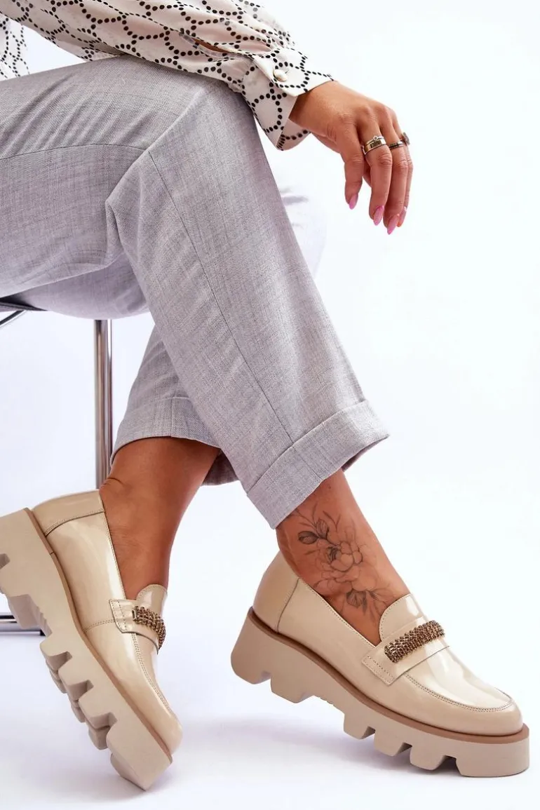Modne Mokasyny Na Platformie Z Ozdobą Laura Messi 2600 Beżowe