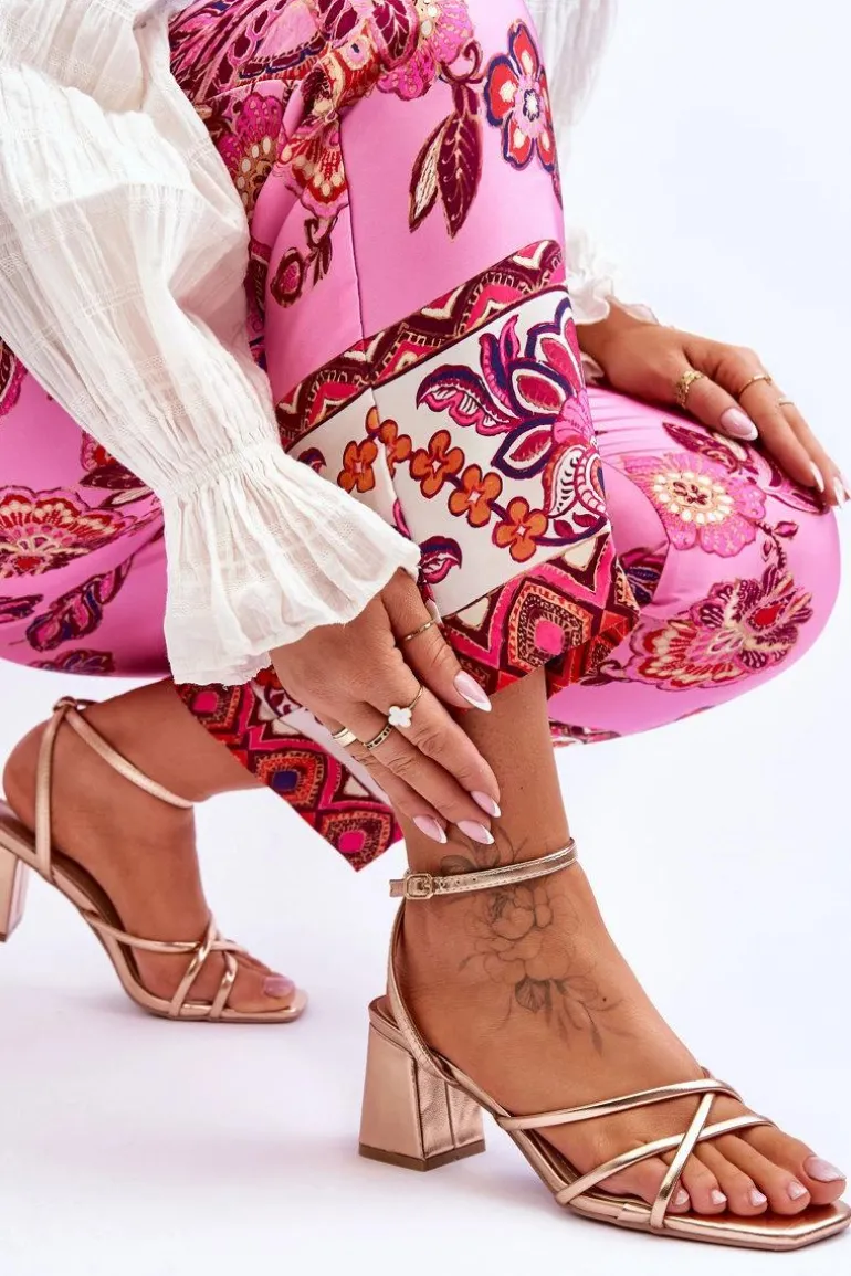 Modne Sandałki Na Obcasie Różowe Złoto Felisa