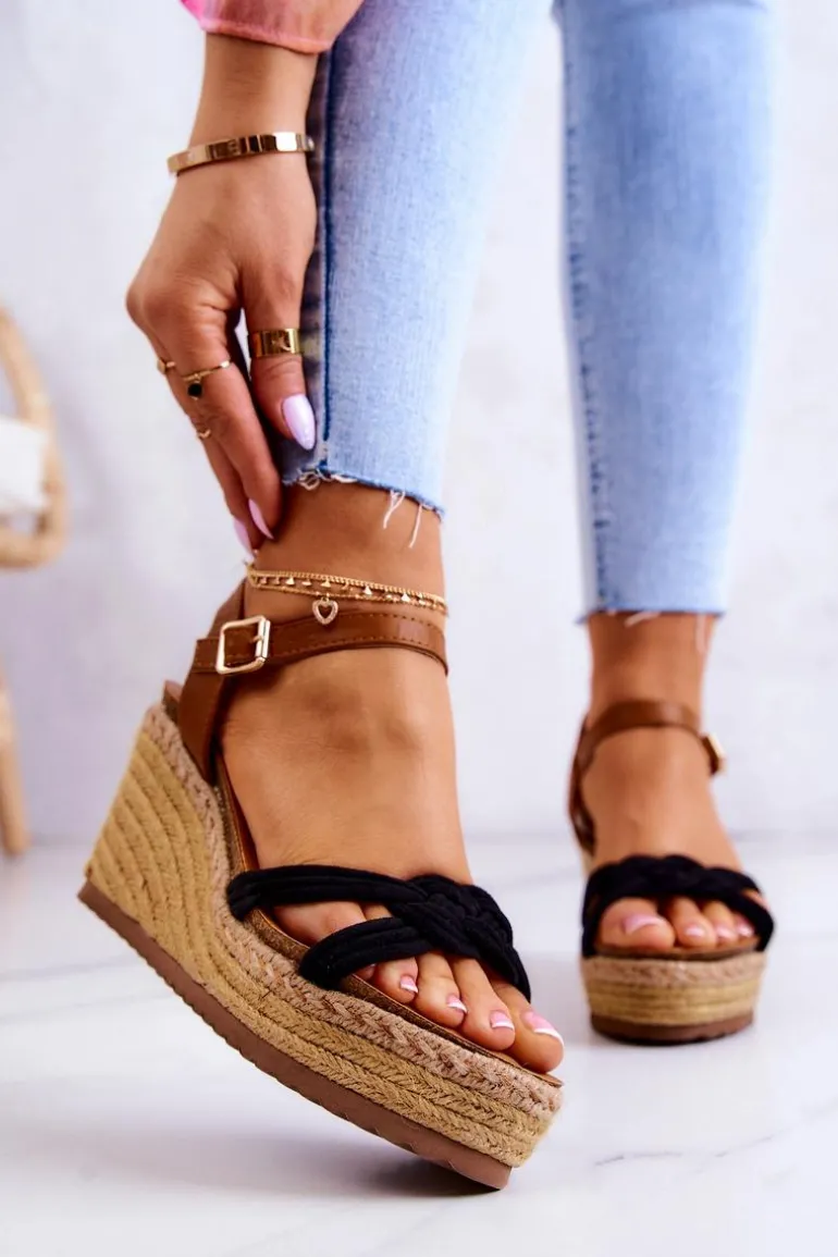 Modne Sandały Na Koturnie Czarne Roseville