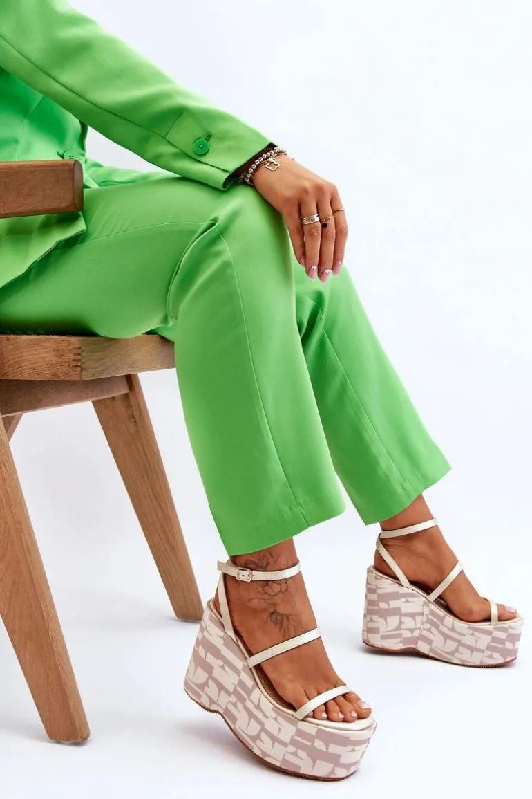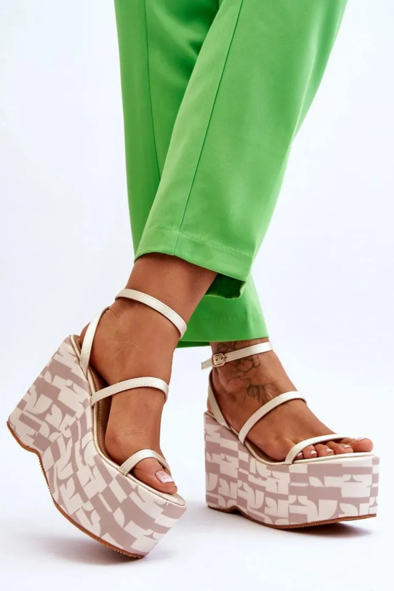 Modne Sandały Na Koturnie We Wzory Beżowe Claria