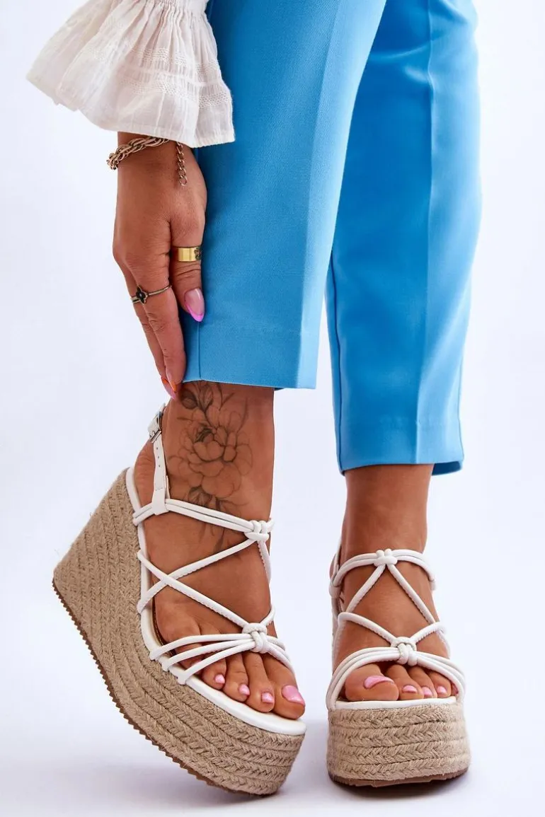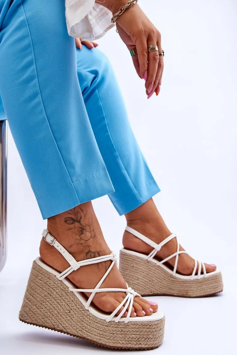 Modne Sandały Na Koturnie Z Plecionką Białe Nessia