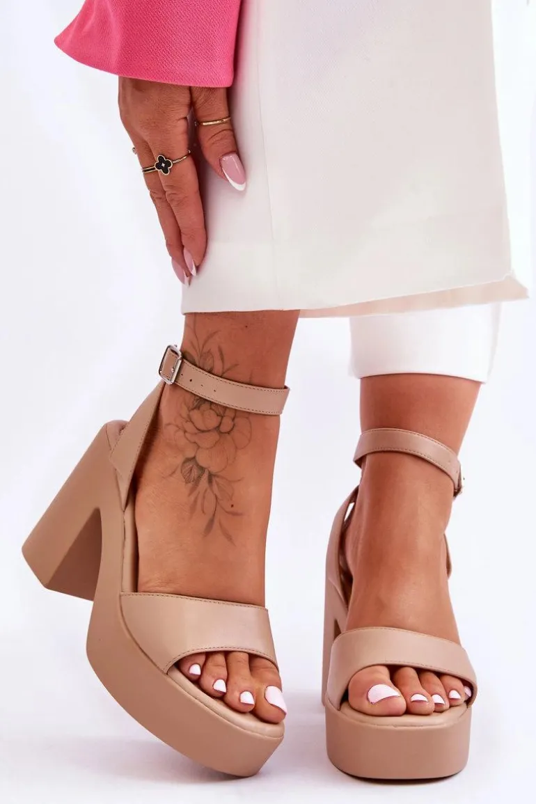 Modne Sandały Na Masywnym Obcasie Beżowe Karmine