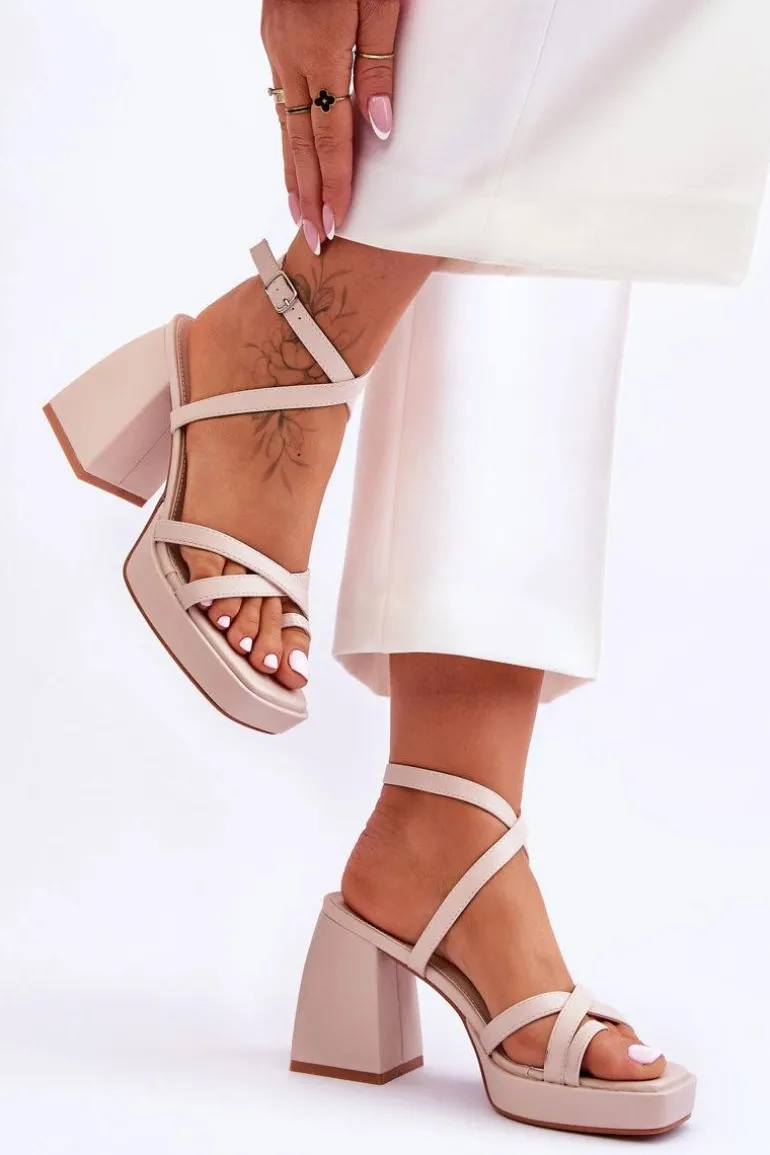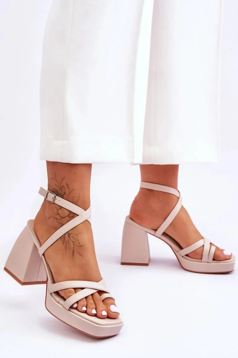 Wyjątkowe sandałki damskie wykonane z eko skóry świetnie sprawdzą się w wielu stylizacjach! Miękka wkładka zapewni wygodne użytkowanie. Sandałki posiadają z przodu paseczki. Zapinane wokół kostki na regulowany pasek ze sprzączką. Model ten został osadzony na masywnym, wyższym obcasie i platformie. Przy wyborze rozmiaru prosimy sugerować się tabelą rozmiarów.