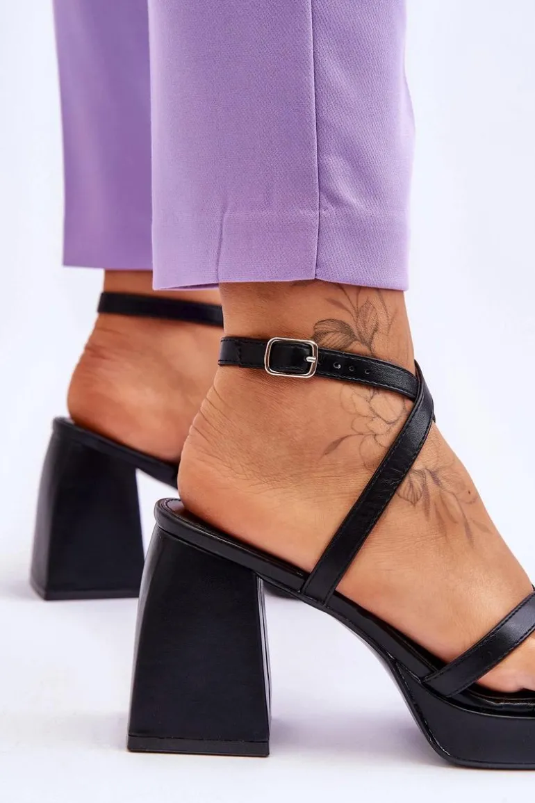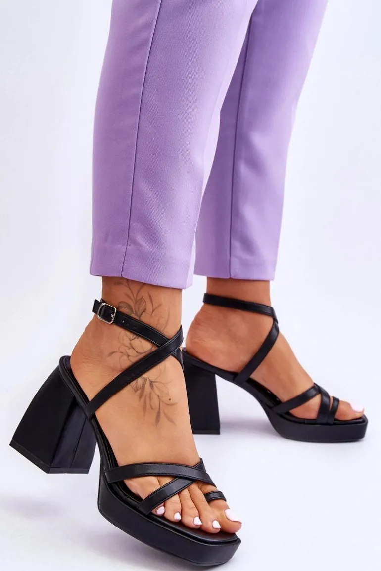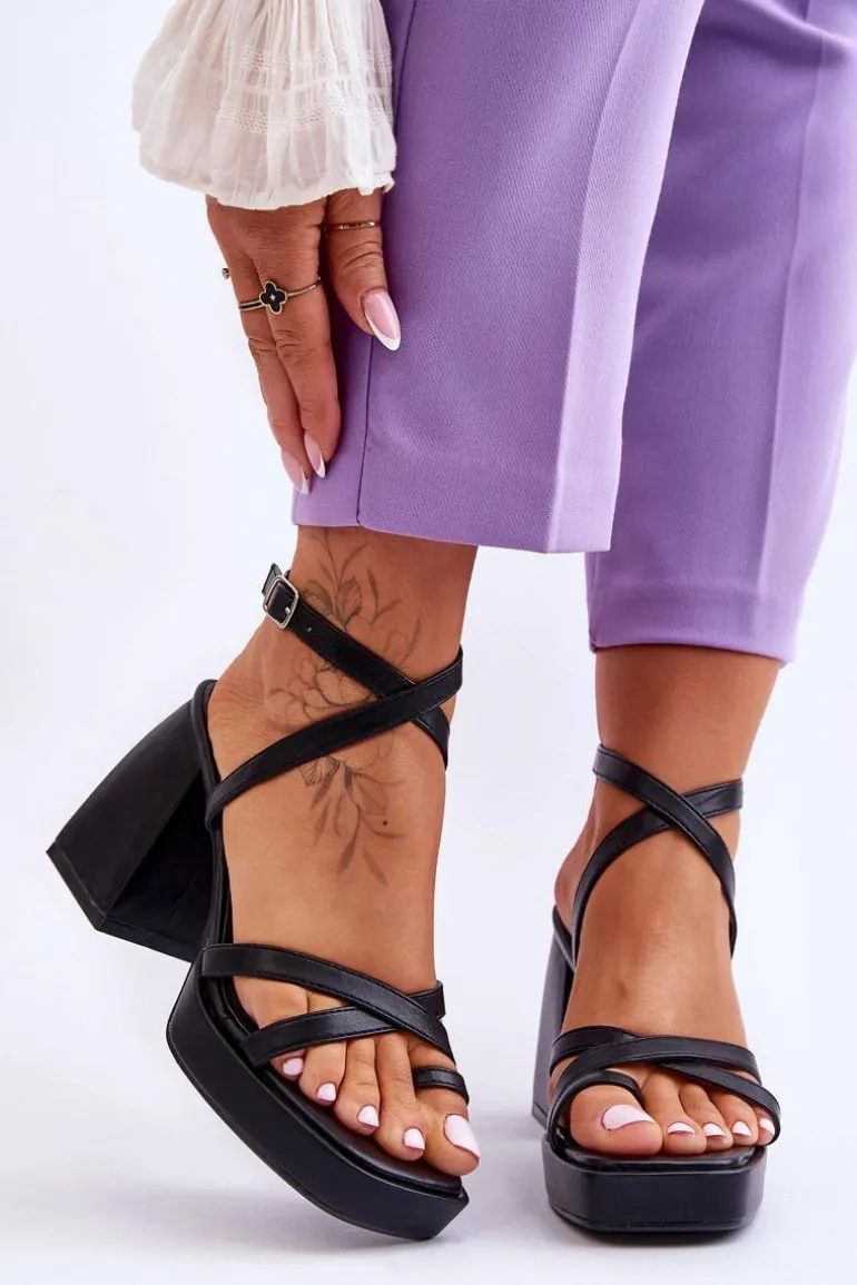 Wyjątkowe sandałki damskie wykonane z eko skóry świetnie sprawdzą się w wielu stylizacjach! Miękka wkładka zapewni wygodne użytkowanie. Sandałki posiadają z przodu paseczki. Zapinane wokół kostki na regulowany pasek ze sprzączką. Model ten został osadzony na masywnym, wyższym obcasie i platformie. Przy wyborze rozmiaru prosimy sugerować się tabelą rozmiarów.