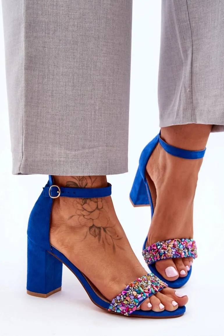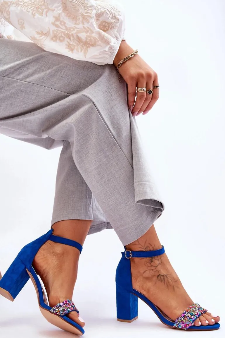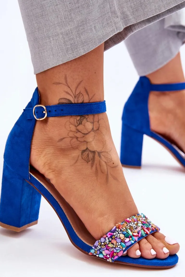 Modne Sandały Na Obcasie Z Ozdobnymi Kamieniami Niebieskie Love Me