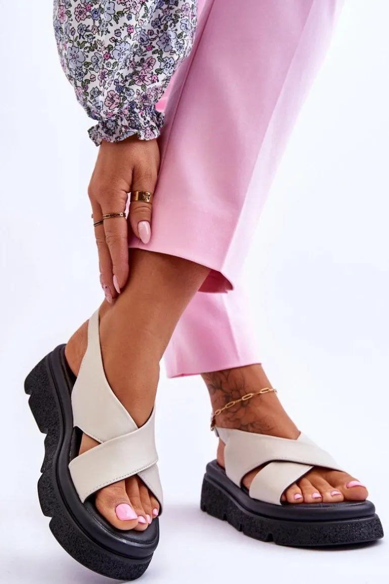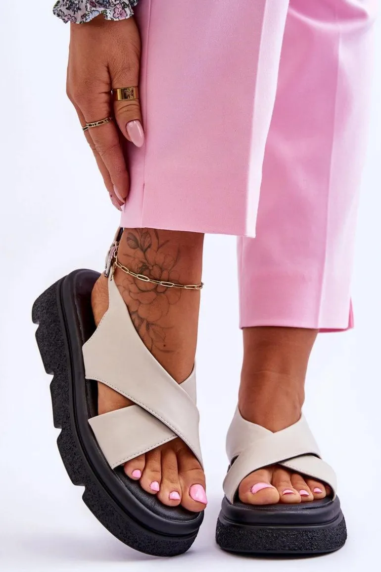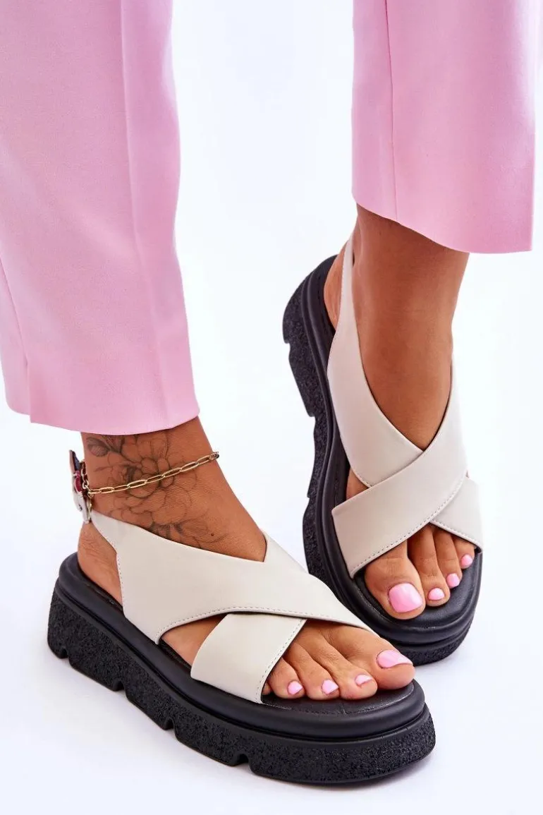 Modne sandały zostały wykonane z wysokiej jakości eko skóry. Posiadają zapinanie wokół kostki na klamrę z regulowanym paskiem. Wkładka została wykonana z miękkiej eko skóry. Sandały posiadają odkryte palce i piętę. Osadzone na masywnej platformie z tworzywa sztucznego. Te sandałki to idealny wybór na upalne dni! Przy wyborze rozmiaru prosimy sugerować się tabelą rozmiarów.