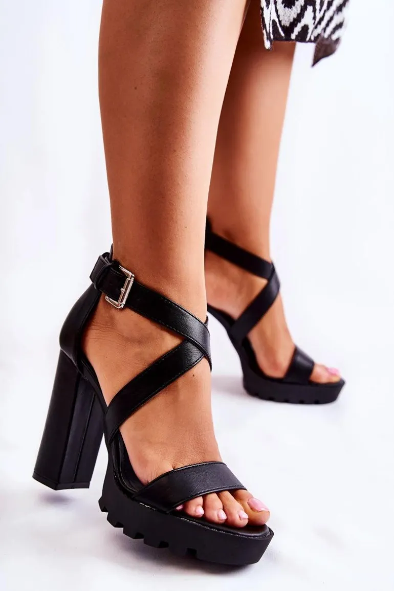 Modne Sandały Na Słupku Z Paskiem Czarne Rammis