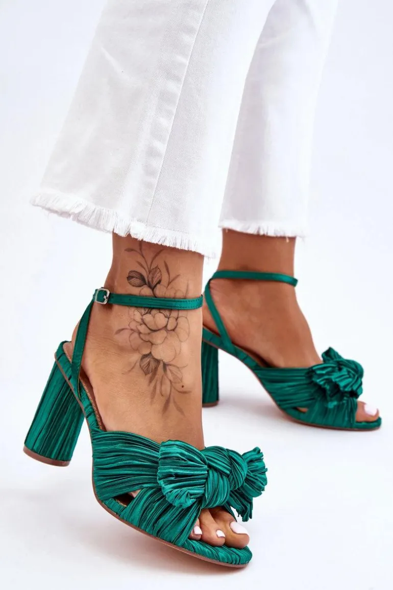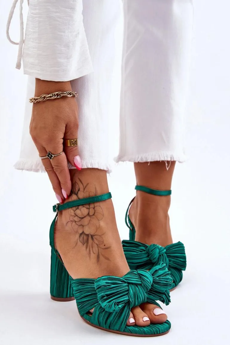 Modne Sandały Z Kokardą Na Obcasie Zielone Callum
