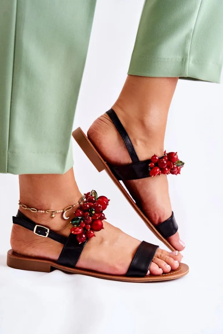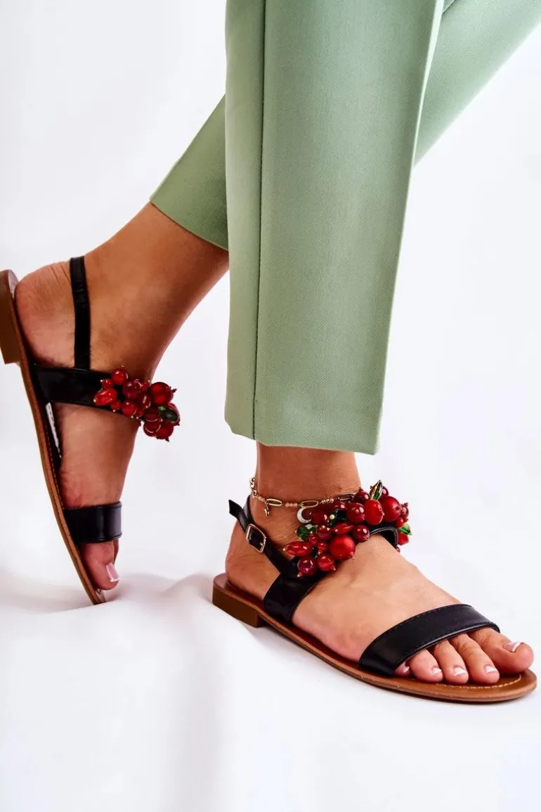 Damskie sandały zostały wykonane z eko skóry. Posiadają piękne koraliki o różnej wielkości. Model zapinany na regulowany pasek ze sprzączką. Wkładka została wykonana z tworzywa sztucznego. Buty zostały osadzone na płaskim obcasie z antypoślizgową podeszwą. Model, który świetnie sprawdzi się w upalne dni. Koniecznie powinnaś je mieć! Przy wyborze rozmiaru prosimy kierować się tabelą rozmiarów.