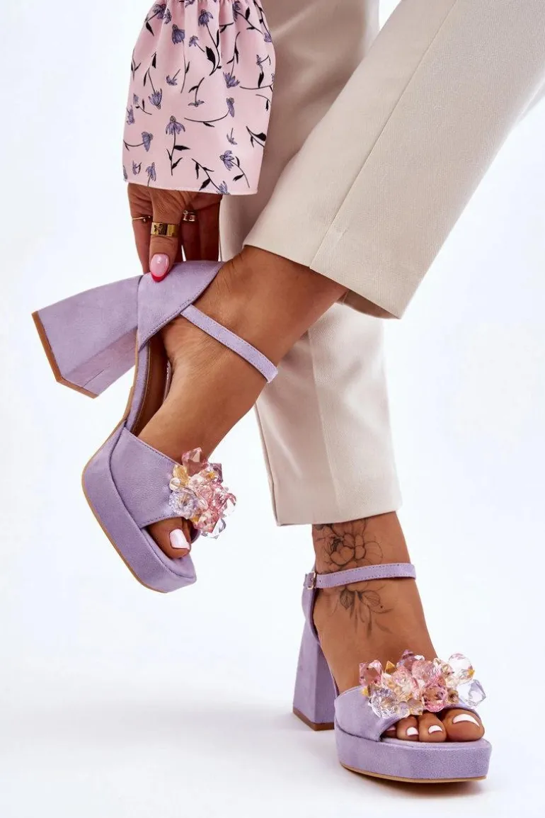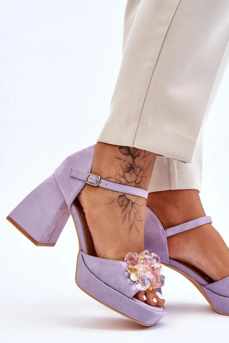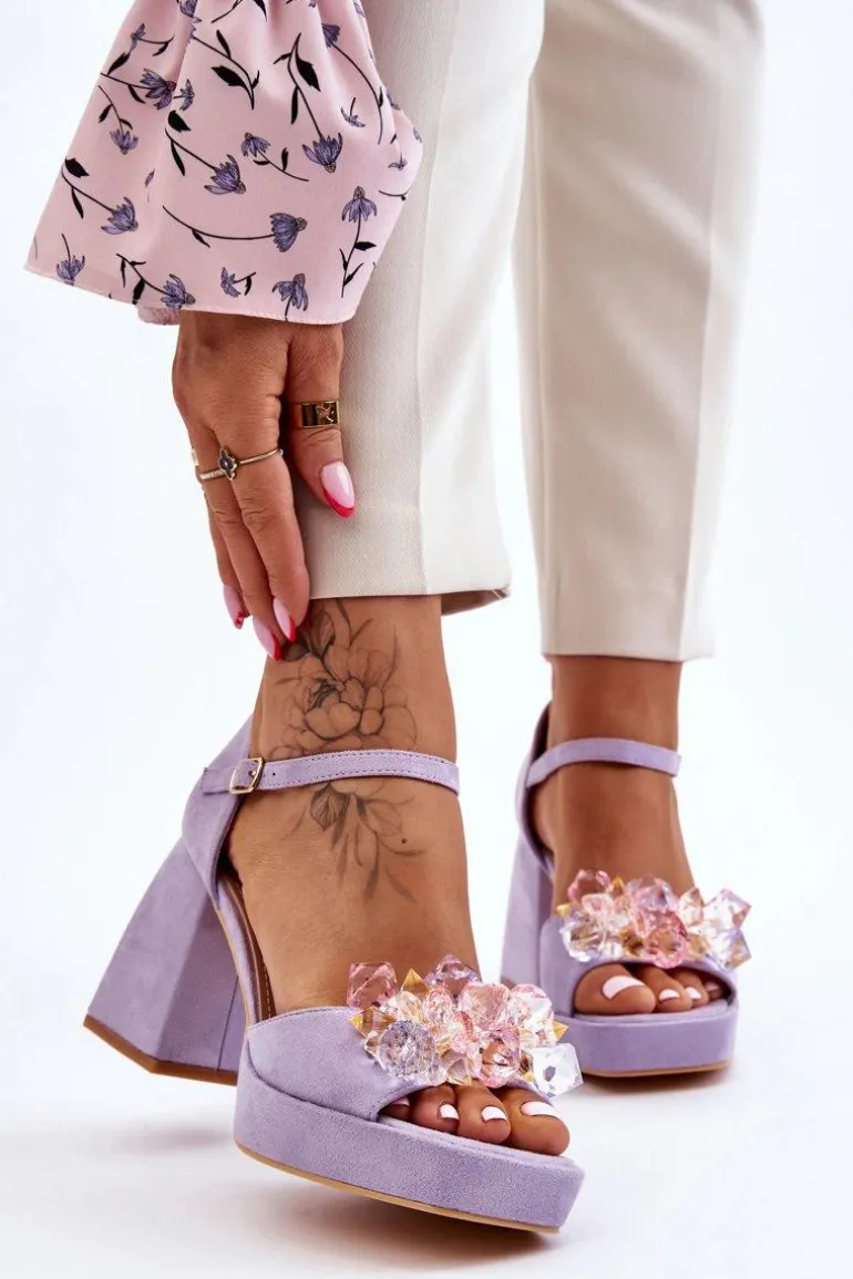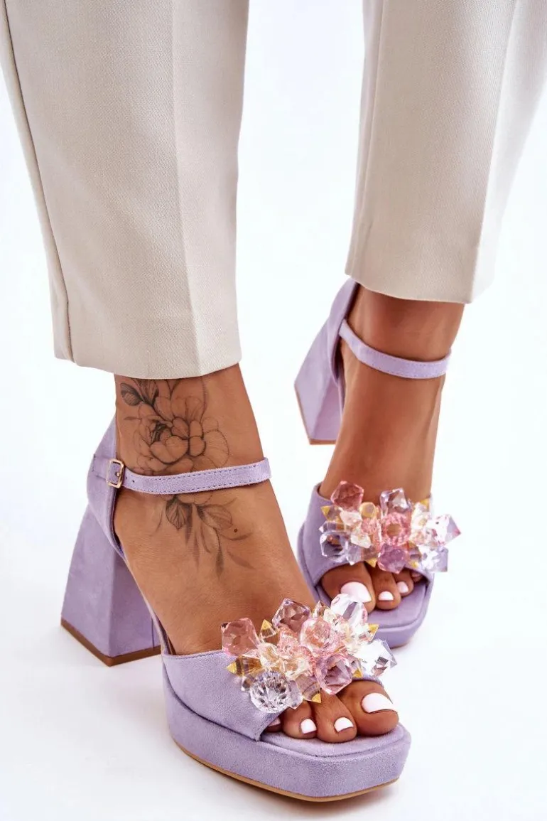 Modne Sandały Z Kryształami Na Masywnym Obcasie Fioletowe Garrett
