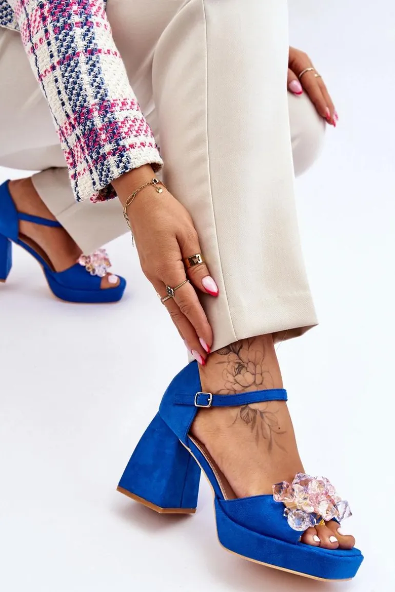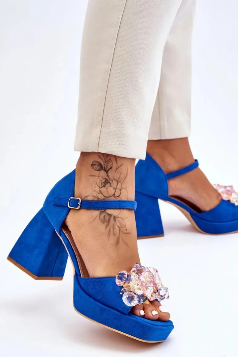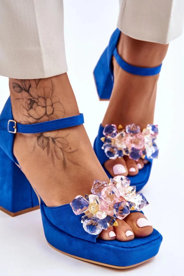 Modne Sandały Z Kryształami Na Masywnym Obcasie Niebieskie Garrett