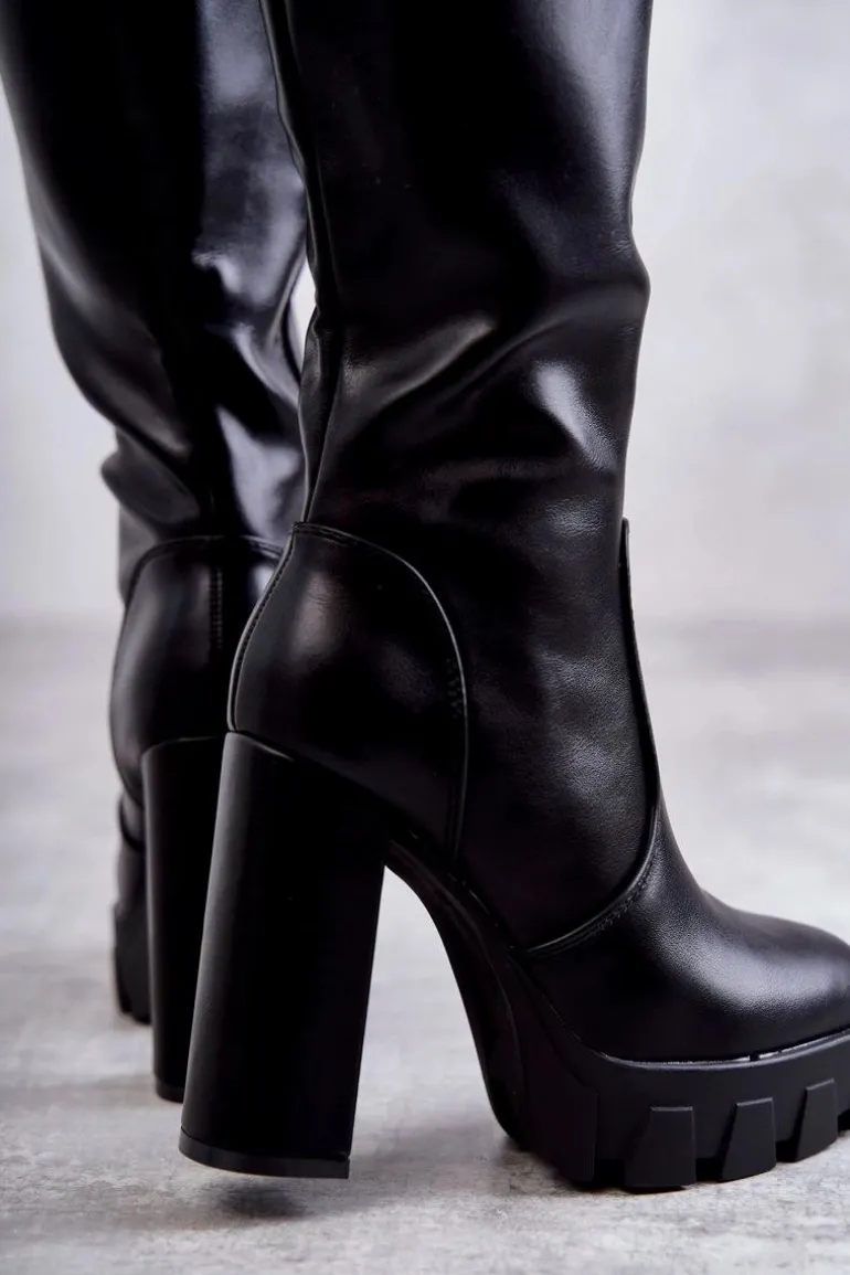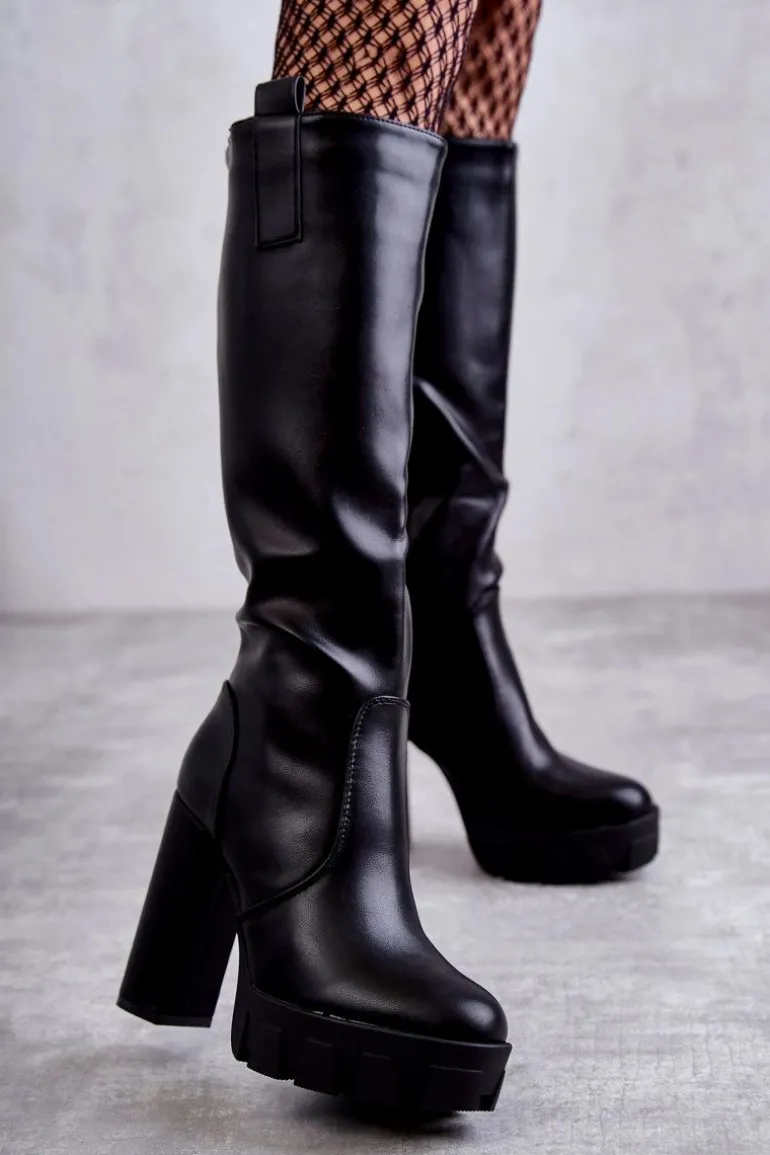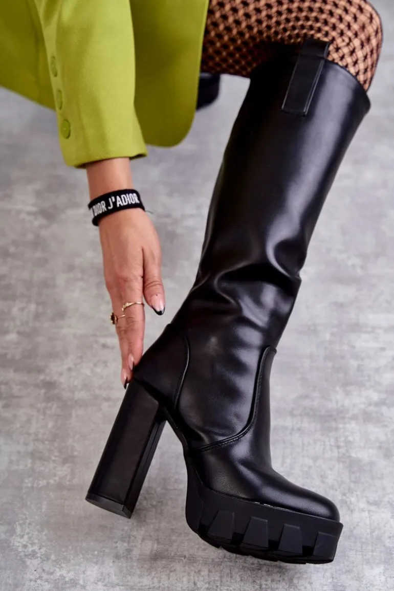 Wygodne kozaki damskie zostały wykonane z eko skóry. Posiadają cholewkę do kolana zapinaną na suwak. Osadzone na obcasie w postaci słupka oraz platformie ze żłobieniami. Ten model musi być Twój! Dodatkowo kozaki posiadają usztywniany zapiętek. Idealne do dzianinowej sukienki czy krótkiej spódniczki. Stwórz z nimi idealną stylizację, którą zachwycisz wszystkich! Przy wyborze rozmiaru prosimy sugerować się tabelą rozmiarów.