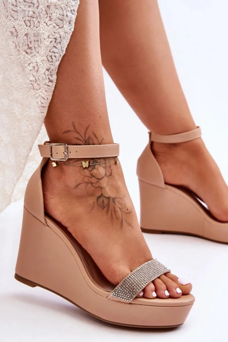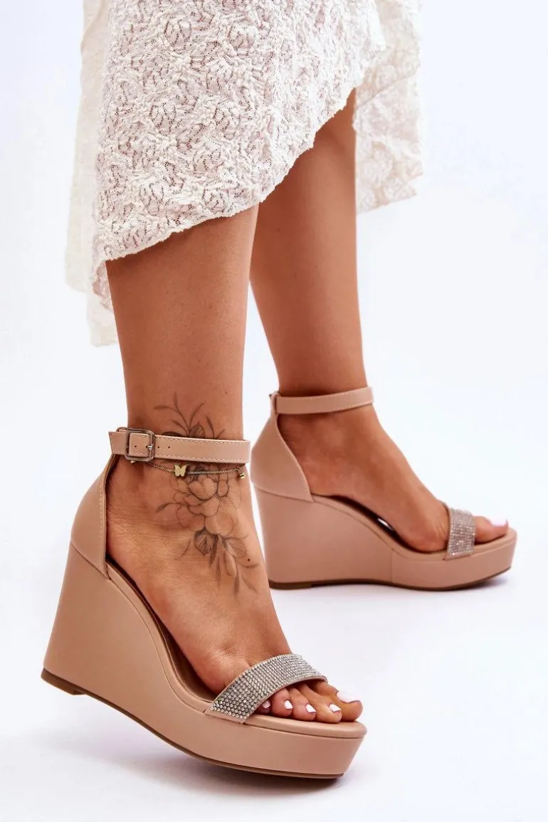 Modne Skórzane Sandały Na Koturnie Nude Arwen