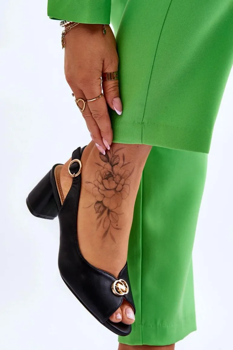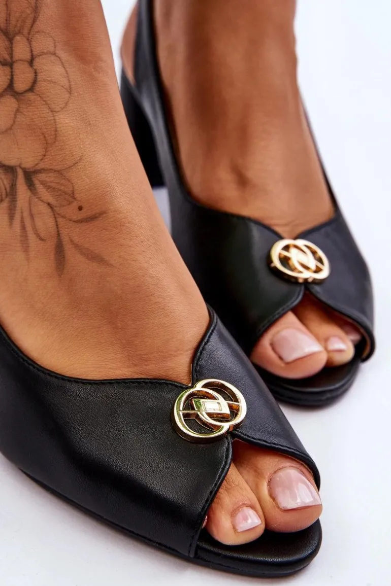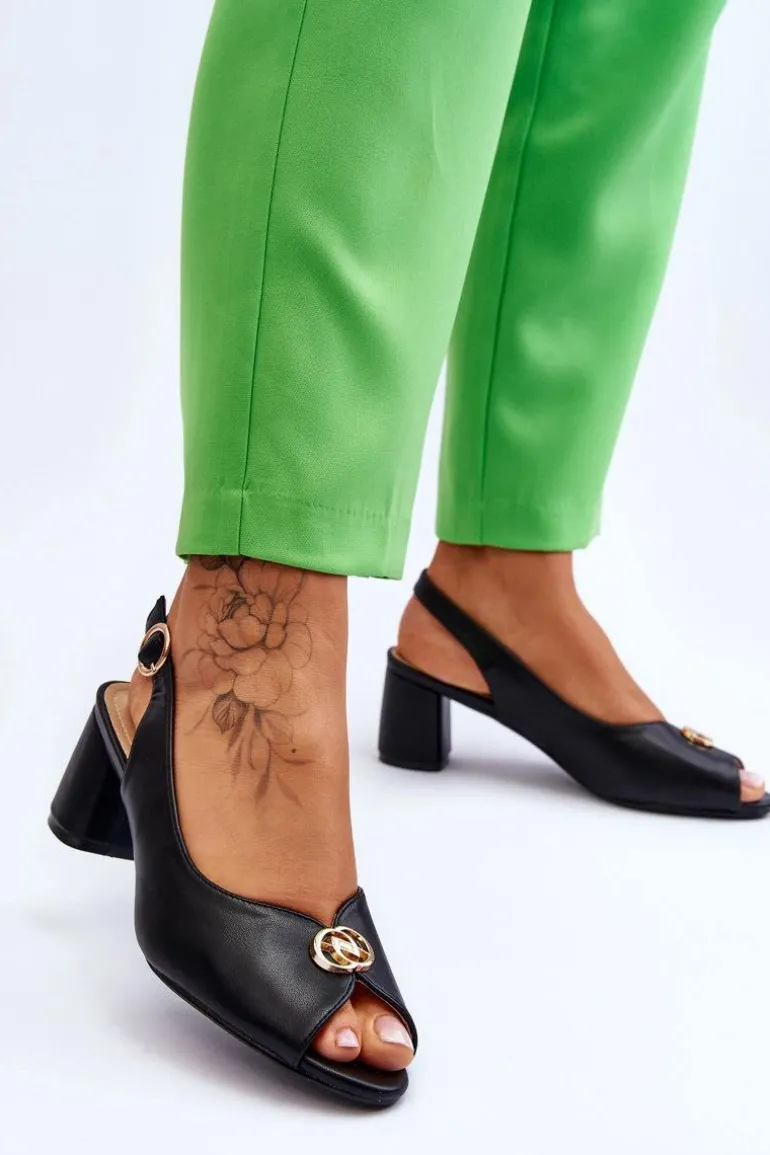 Modne Skórzane Sandały Na Obcasie Czarne Hette