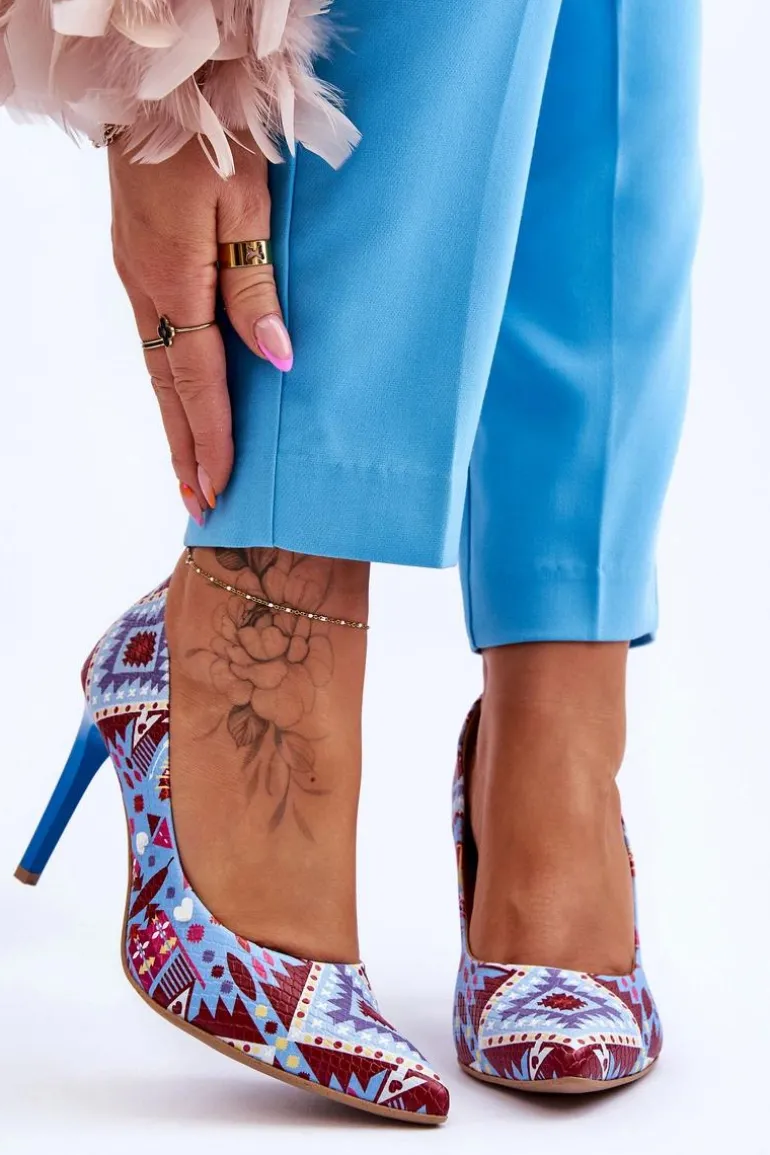 Modne Skórzane Szpilki Lewski Shoes 2659 Niebiesko-Czerwone