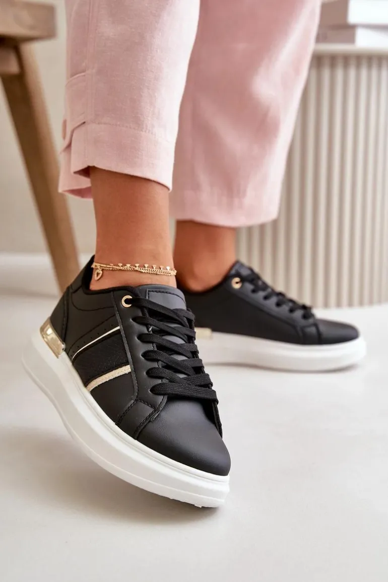 Modne sneakersy na platformie z lustrzanym elementem to stylowy wybór, który doda charakteru każdej stylizacji. Wykonane z eko skóry. Idealne do casualowych i bardziej formalnych stylizacji. Model ten to niezbędnym elementem w szafie każdej kobiety ceniącej aktualne trendy. Przy wyborze rozmiaru prosimy kierować się tabelą rozmiarów.