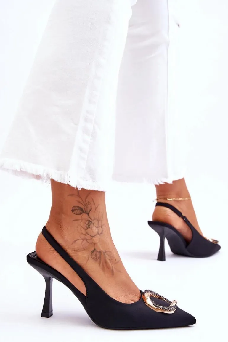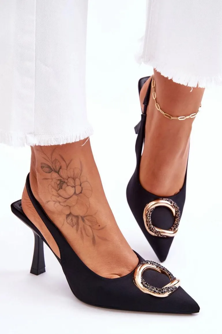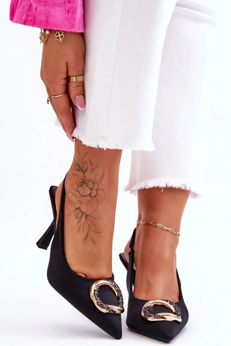 Niesamowite szpilki z pewnością przypadną do gustu niejednej miłośniczce modowych inspiracji! Zostały wykonane z materiału tekstylnego. Na przodzie znajduje się elegancka ozdoba z dżetami imitującymi cyrkonie. Nosek w szpic oraz obcas w postaci szpilki optycznie wysmuklą nogi. Miękka wkładka została wykonana z eko skóry. Przy wyborze rozmiaru prosimy sugerować się tabelą rozmiarów.