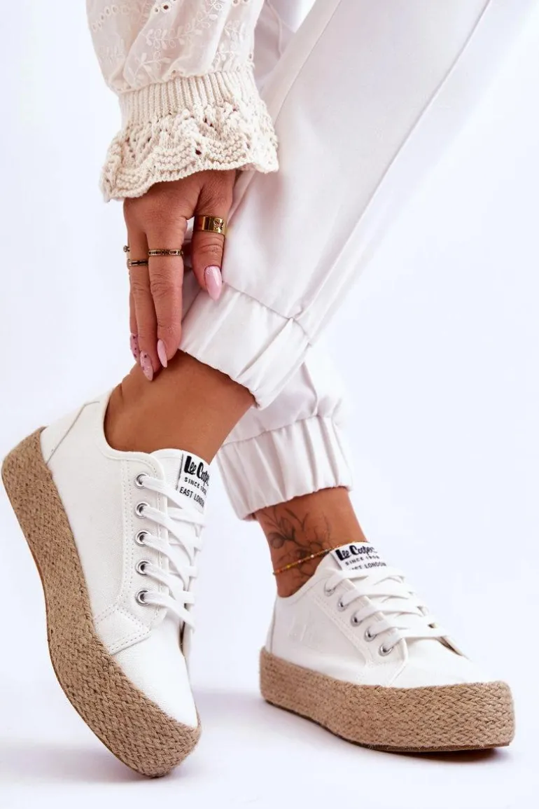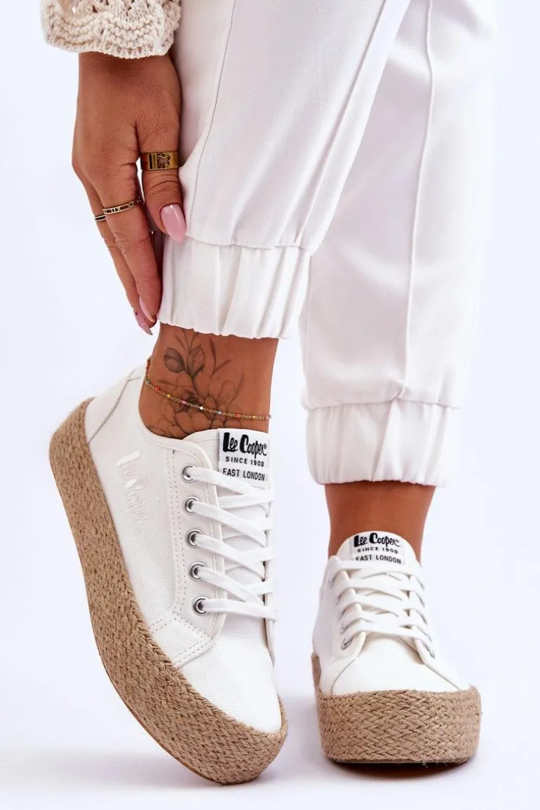 Modne, damskie trampki marki Lee Cooper zostały wykonane z materiału tekstylnego. Posiadają masywną platformę ozdobioną jutową plecionką. Model klasycznie sznurowany. Miękka, materiałowa wkładka oraz usztywniany zapiętek zapewnią odpowiednią stabilizację i wygodę w użytkowaniu. Koniecznie sprawdź także pozostałe modele trampek marki Lee Cooper! Przy wyborze rozmiaru prosimy sugerować się poniższą tabelą rozmiarów.