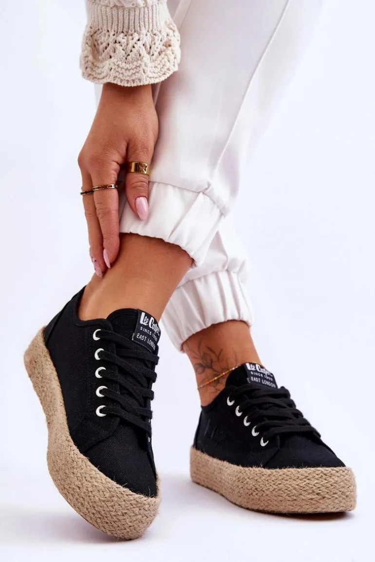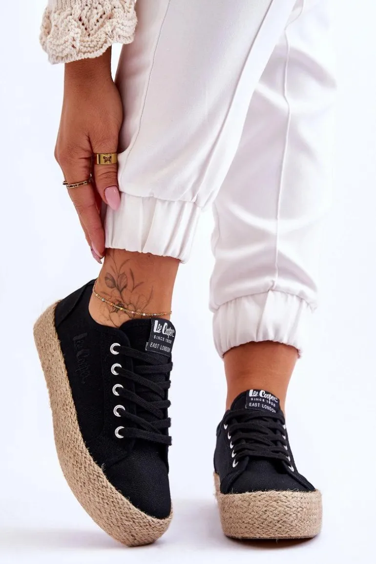 Modne, damskie trampki marki Lee Cooper zostały wykonane z materiału tekstylnego. Posiadają masywną platformę ozdobioną jutową plecionką. Model klasycznie sznurowany. Miękka, materiałowa wkładka oraz usztywniany zapiętek zapewnią odpowiednią stabilizację i wygodę w użytkowaniu. Koniecznie sprawdź także pozostałe modele trampek marki Lee Cooper! Przy wyborze rozmiaru prosimy sugerować się poniższą tabelą rozmiarów.