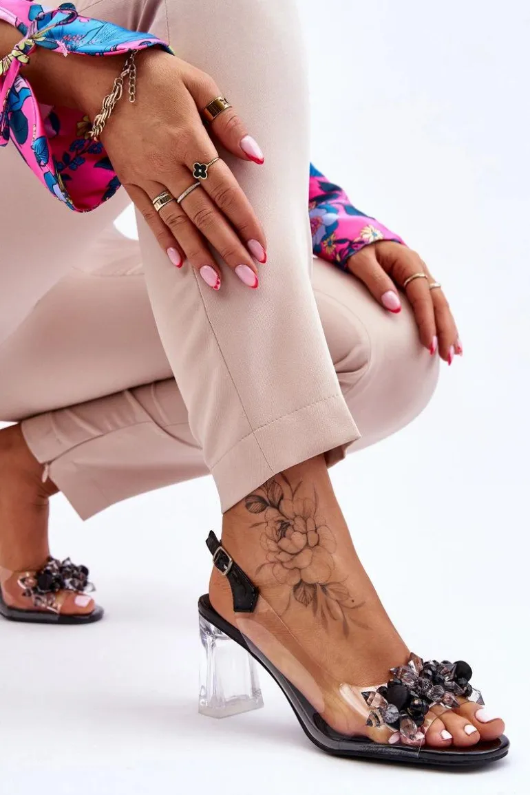 Modne Transparentne Sandałki Z Ozdobami Czarne Carmelo