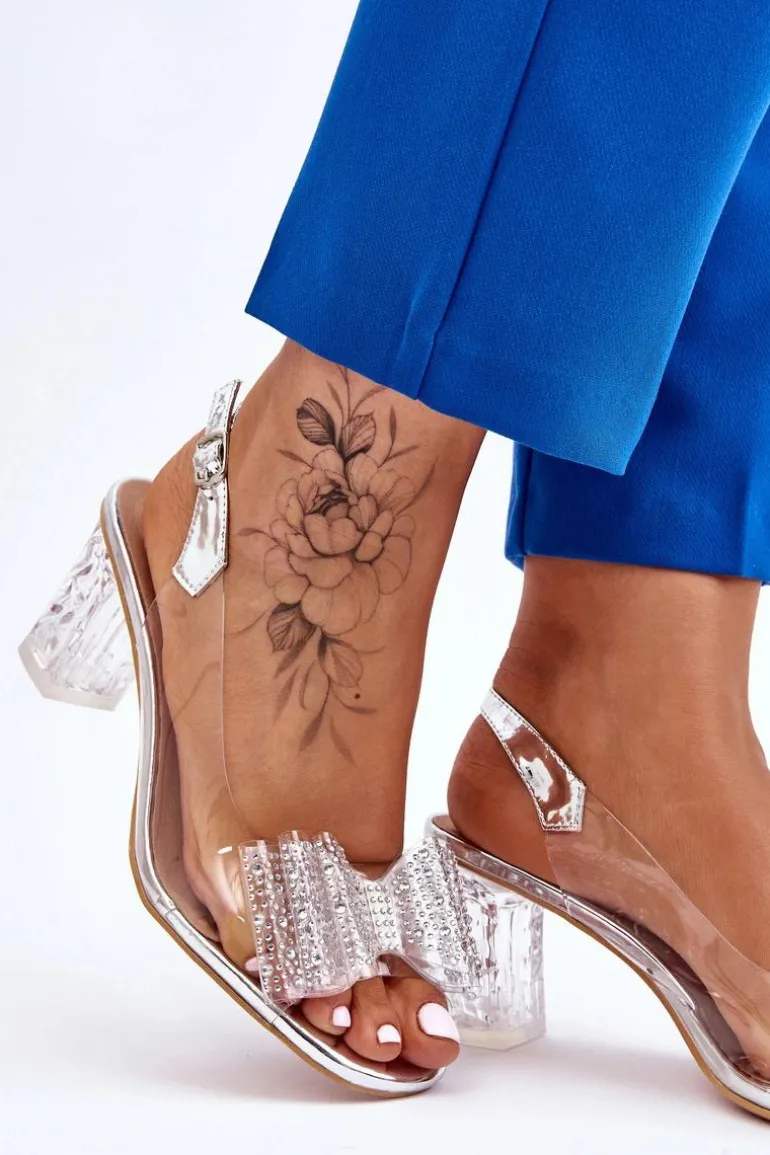 Modne Transparentne Sandały Z Kokardą Srebrne Ariella