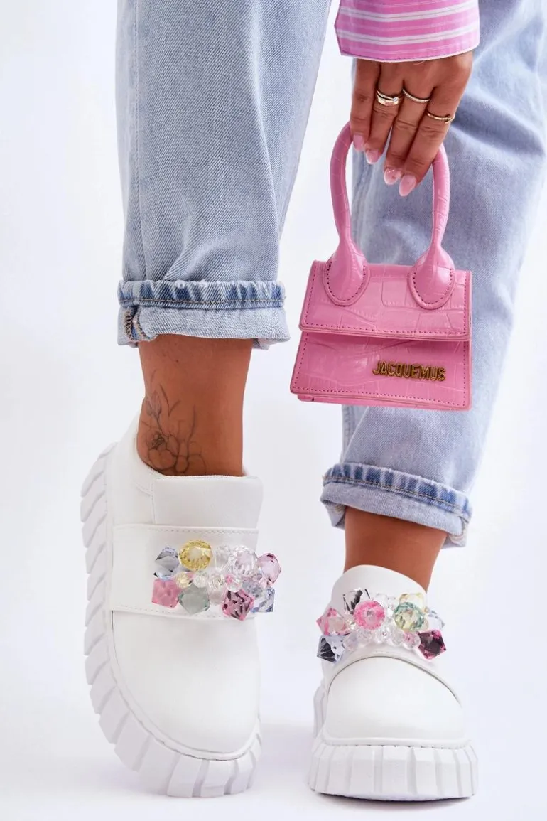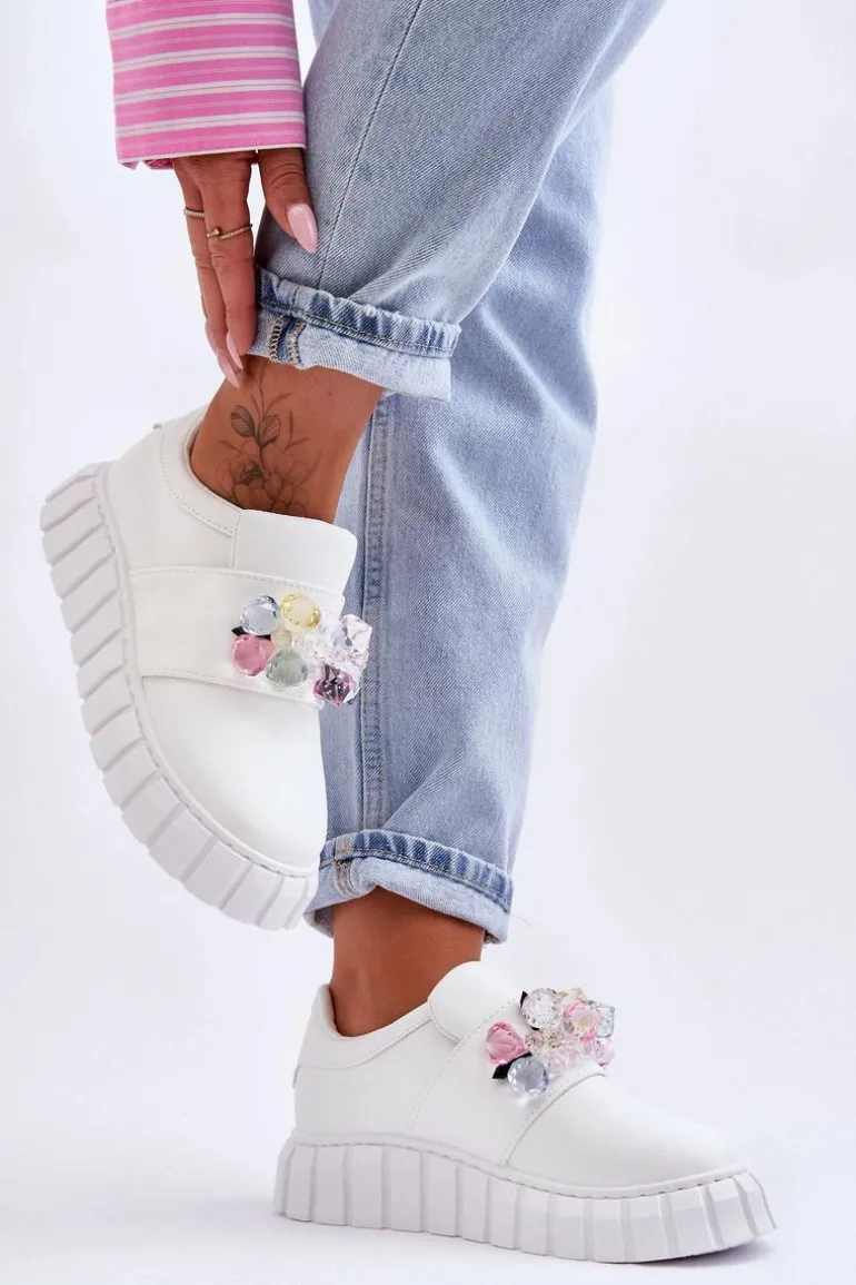 Modne Wsuwane Buty Sportowe Półbuty Z Ozdobą Białe Desire