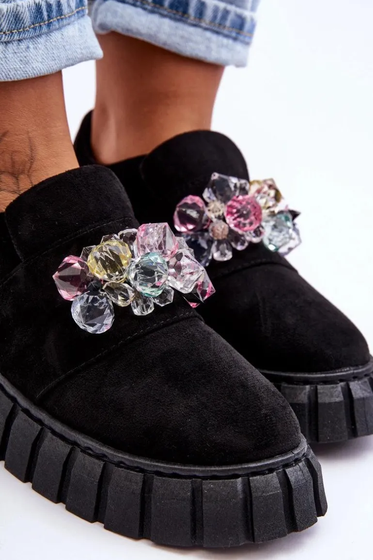 Modne Wsuwane Buty Sportowe Półbuty Z Ozdobą Czarne Desire
