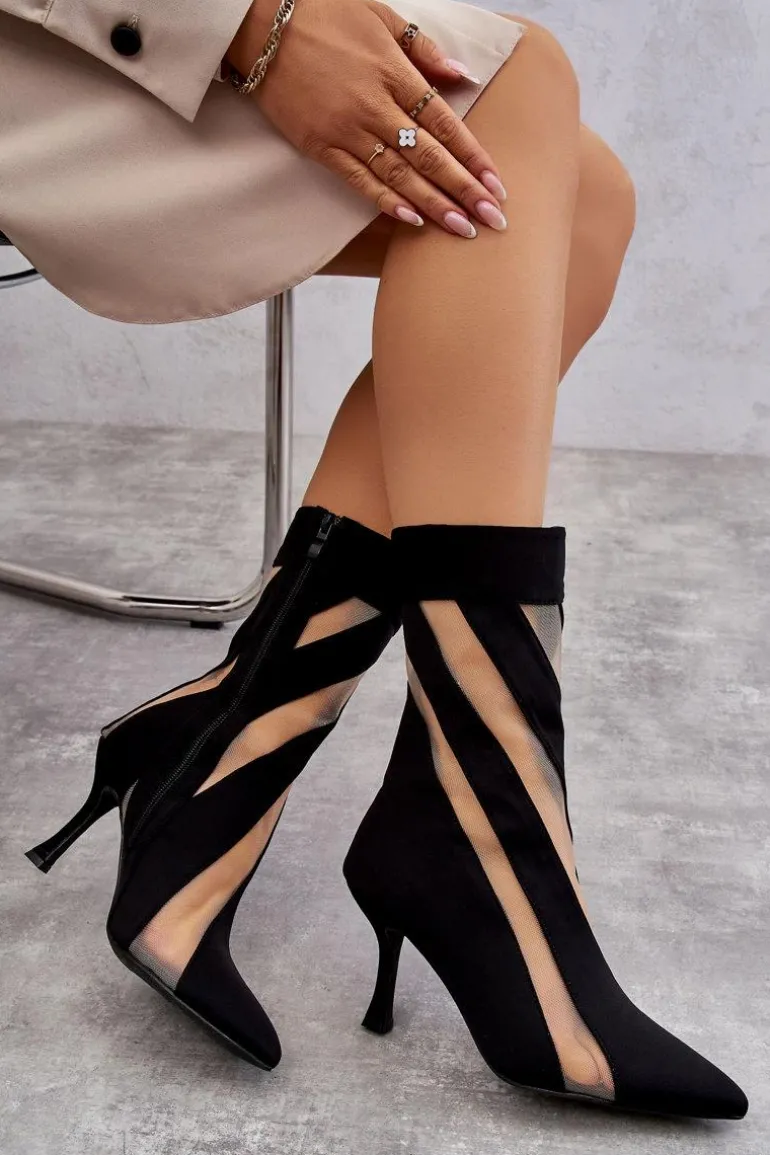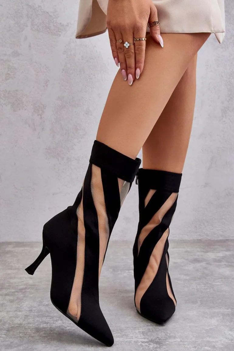 Wyjątkowe, damskie botki to HIT tego sezonu! Świetny fason z ciekawym, modnym wzorem na całości cholewki. Botki zostały wykonane z połączenia materiału oraz tworzywa sztucznego. Model z noskiem w szpic i obcas w postaci szpilki optycznie wysmuklą nogi. Zamykane z boku cholewki na suwak. Przy wyborze rozmiaru prosimy sugerować się tabelą rozmiarów.