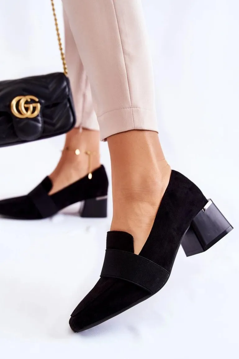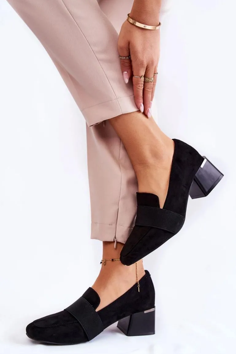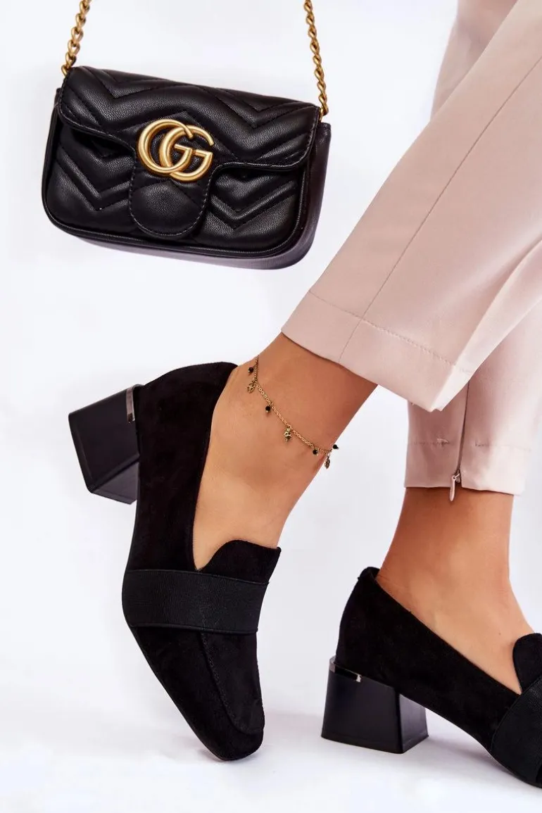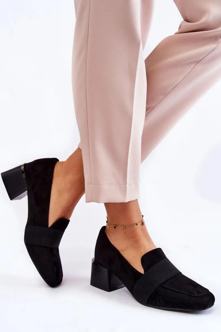 Modne czółenka zostały wykonane z wysokiej jakości eko skórzanych materiałów. Posiadają ozdobną gumę na wysokości śródstopia. Dodatkowo usztywniany zapiętek zapewni odpowiednią stabilizację stopy. Czółenka te posiadają miękką wkładkę wykonaną z naturalnej skóry. Wygoda i komfort zapewnione! Buty te zostały osadzone na obcasie w postaci niskiego klocka. Przy wyborze rozmiaru prosimy sugerować się tabelą rozmiarów.