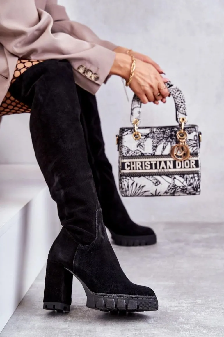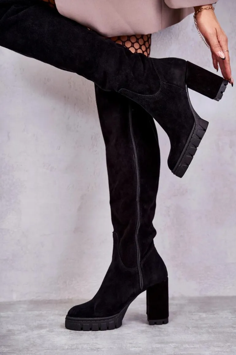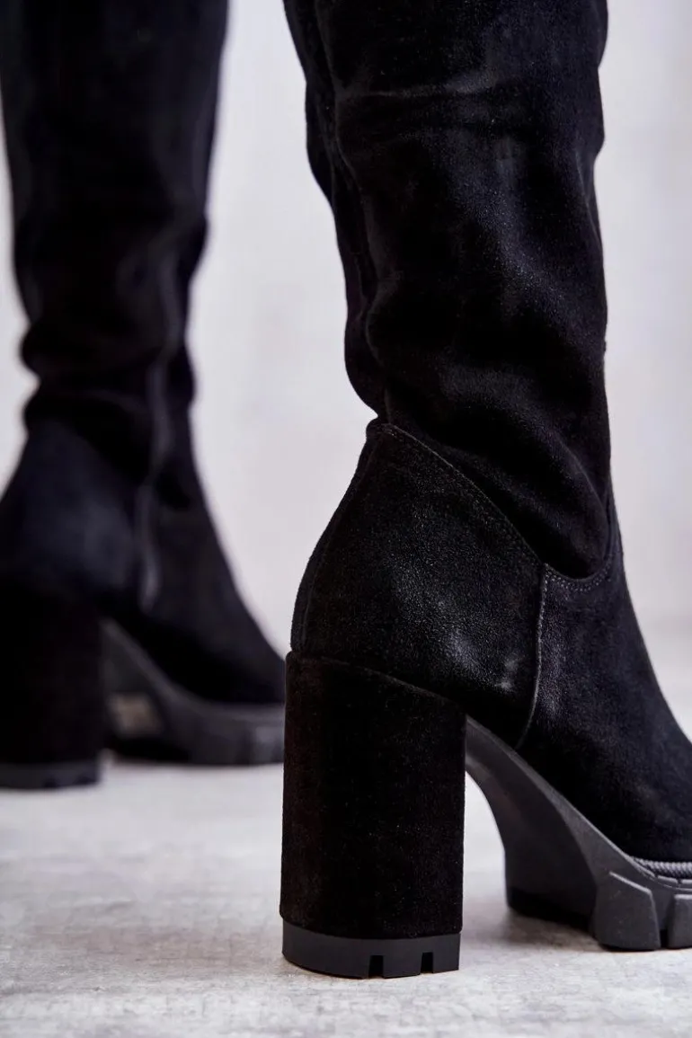 Piękne kozaki damskie od polskiego producenta zostały wykonane z naturalnego zamszu. Model z zaokrąglonym noskiem. Cholewka na całości zapinana na suwak, z ozdobnym wycięciem z tyłu. Obcas w postaci słupka i delikatna platforma to gwarancja stabilności. Skórzana, miękka wkładka zapewni komfort podczas użytkowania. Idealny model na przejściowe sezony. Dodatkowo kozaki posiadają usztywniany zapiętek. Przy wyborze rozmiaru prosimy sugerować się tabelą rozmiarów.