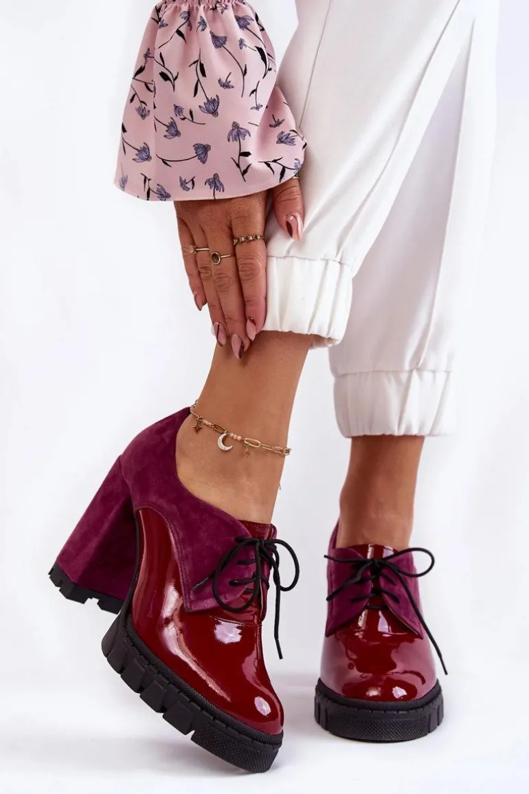 Piękne botki damskie zostały wykonane z najwyższej jakości naturalnych skór z dbałością o szczegóły. Model ten posiada klasyczne sznurowanie. Zapiętek w tych botkach jest usztywniany. Osadzono je na obcasie w postaci słupka oraz platformie ze żłobieniami. Miękka wkładka wykonana z naturalnej skóry zapewni komfort podczas użytkowania. Ten model powinien znaleźć się w Twojej szafie! Przy wyborze rozmiaru prosimy sugerować się tabelą rozmiarów.