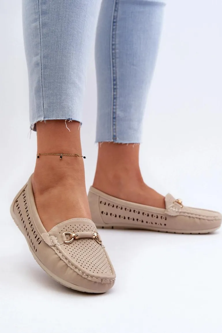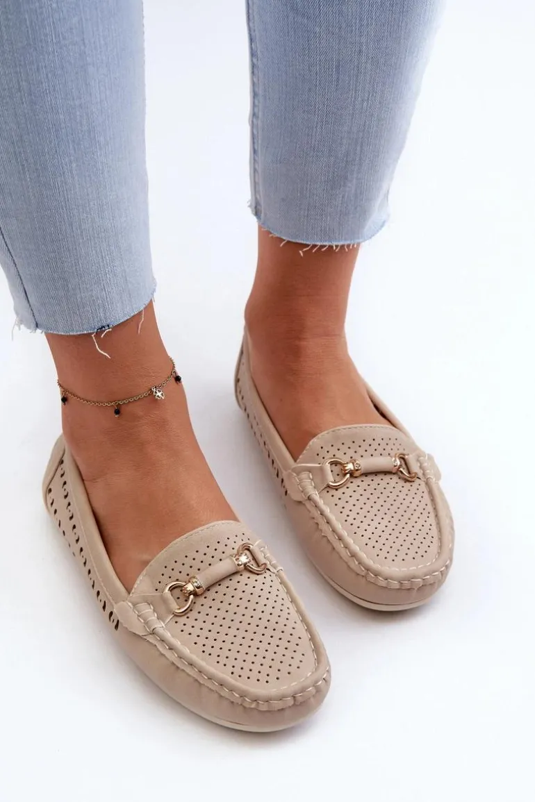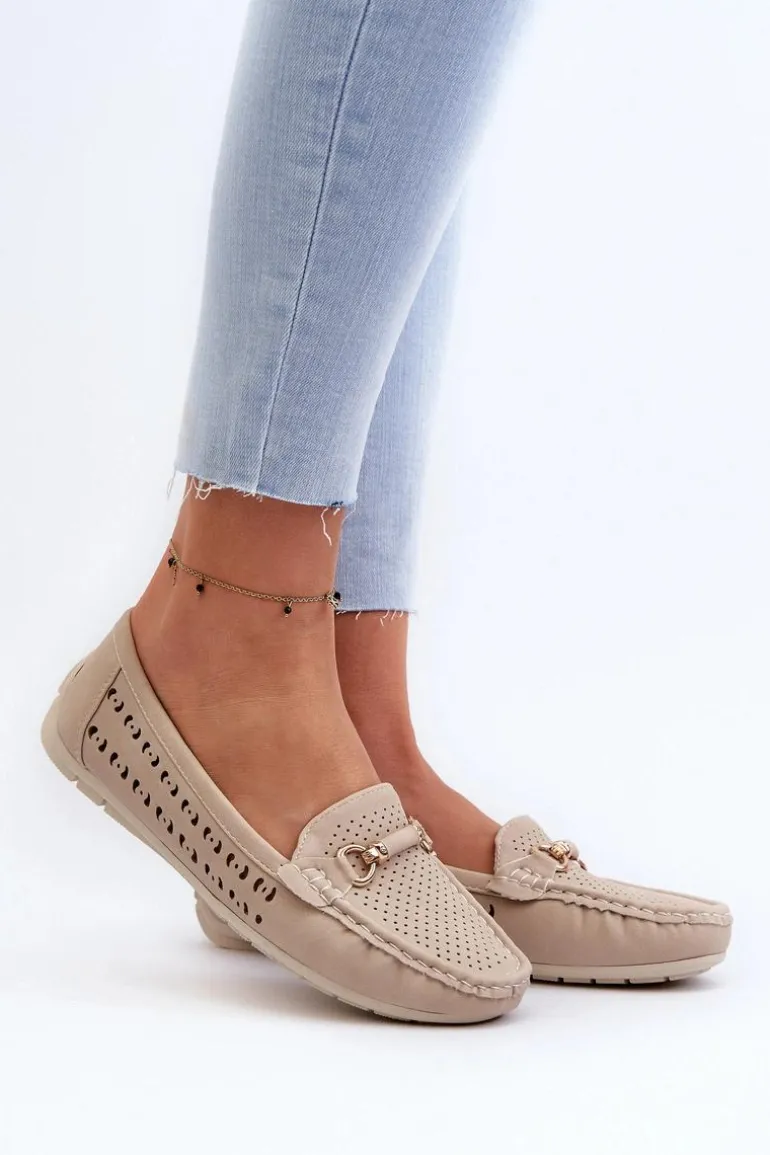 Mokasyny Damskie Ażurowe Z Ozdobą Beżowe Kaydance