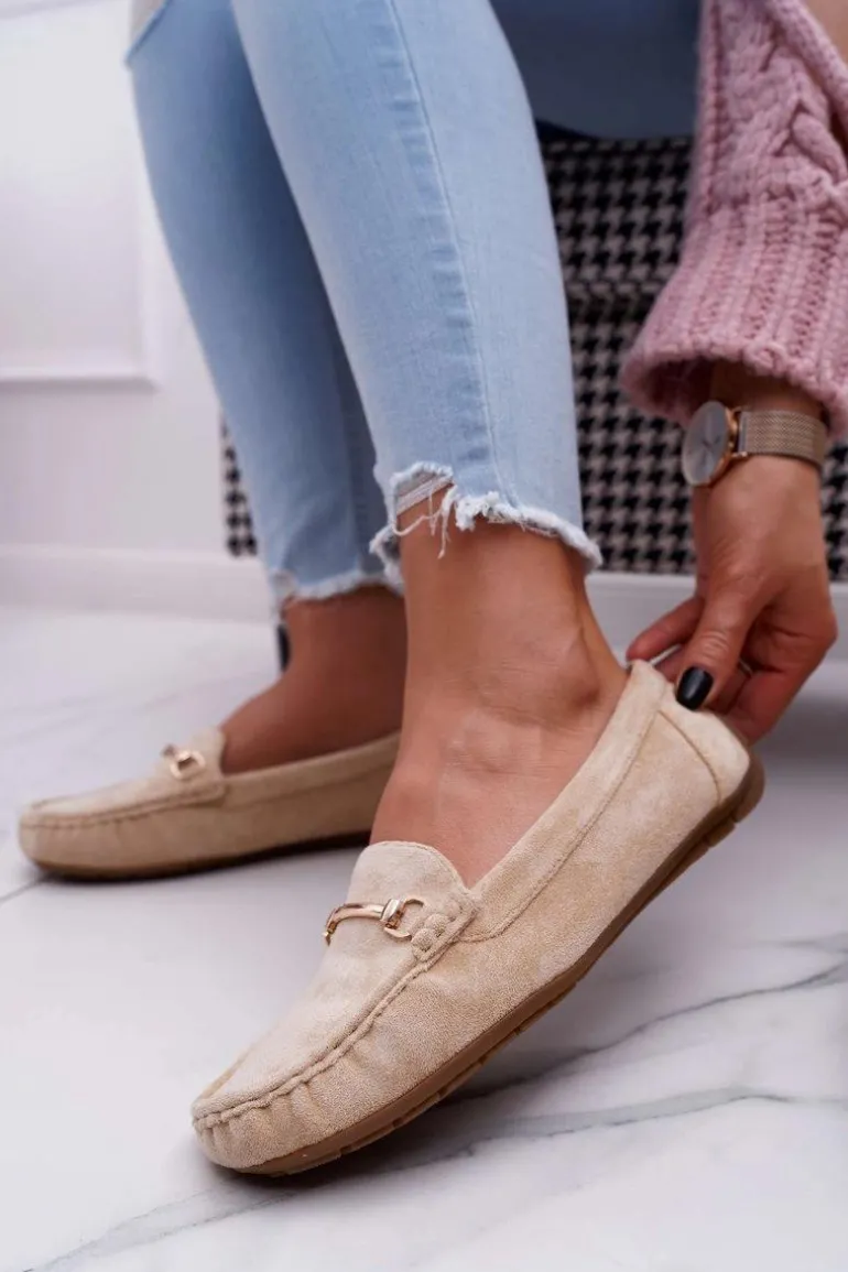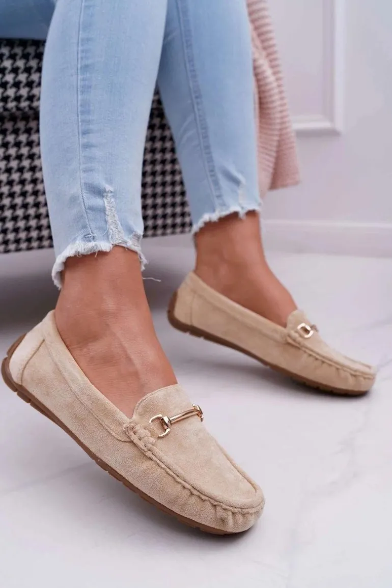 Mokasyny Damskie Beżowe Zamszowe Sonnero